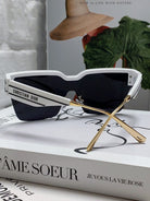 OBLIQUE SUNGLASS 571600 IN WHITE METAL BLACK MIRROR LENSES