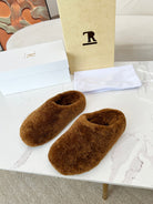 The Row 2025 Retro Oversized Toe Birkenstock Slipper Brown Wool 576032