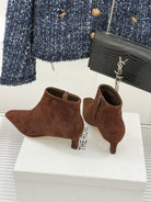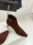 The Row 2025 Square Toe Kitten Heel Ankle Boot Brown Suede 572052