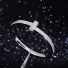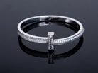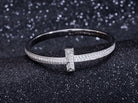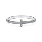 WIDE DIAMONDS HINGED BANGLE SILVER