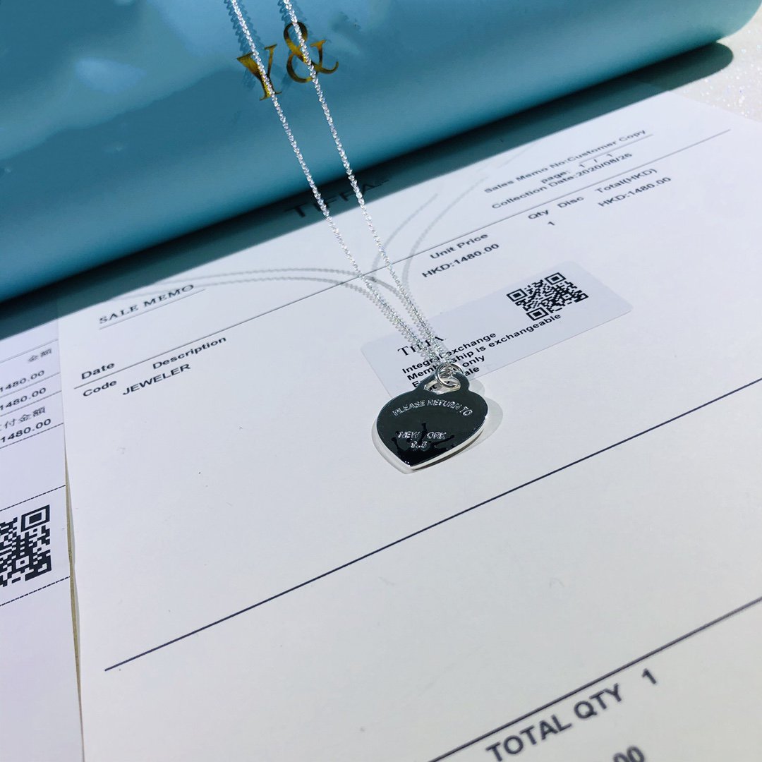 DOUBLE HEART TAG PENDANT SILVER MINI NECKLACE