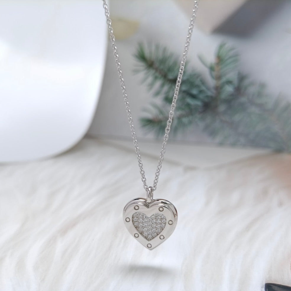 DOUBLE HEART PEDANT SILVER NECKLACE
