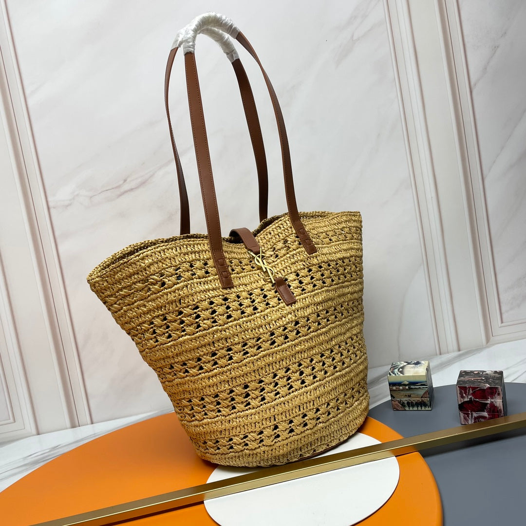 YSL TOTE BAG 29CM PANIER LEATHER TRIMMED RAFFIA