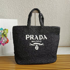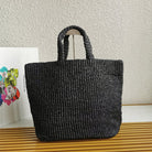 crochet tote bag 40cm black raffia