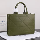 PRA LARGE 39 TOTE IN OLIVE GREEN CALFSKIN GOLD HARDWARE