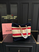 TOTE BAG 36 IN COLORFUL HORIZONTAL RAFFIA WOVEN