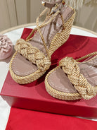 Garavani Rockstud Wedge Sandals 100mm In Beige Mix Rosy Brown Calfskin And Nylon Rope 829396