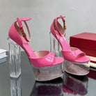 HIGH SANDAL 14CM IN BRIGHT PINK CALFSKIN AND TRANSPARENT PVC