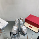 HIGH SANDAL 14CM IN SILVER CALFSKIN AND TRANSPARENT PVC