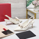 ROCKSTUD BOW SLINGBACK WHITE PATENT LEATHER PUMP 60MM