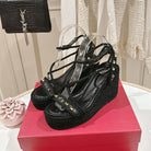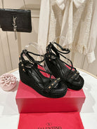 Rockstud Flatform Sandal 10mm In Black Calfskin And Nylon Rope 829393