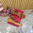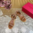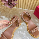 Rockstud Flatform Sandal 45mm In Brown Mix Brownish Pink Calfskin And Raffia 102842