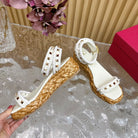 Rockstud Flatform Sandal 45mm In White Calfskin And Raffia 102844