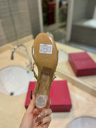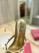 ROCKSTUD MULE SANDALS IN GOLD CALFSKIN AND TRANSPARENT PVC FILM