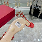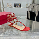 ROCKSTUD THONG SANDAL WITH STRAPS IN CHERRY RED CALFSKIN