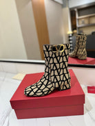Valentino Garavani VLogo Tall Monogram Ankle Boots 30mm In Beige Mix Black Canvas Fabric 992806