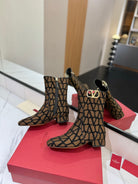 Valentino Garavani VLogo Tall Monogram Ankle Boots 30mm In Brown Mix Black Canvas Fabric 992798