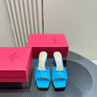 Vogo Signature High Shine Open Toe Sandals In Blue Glossy Lambskin 839817