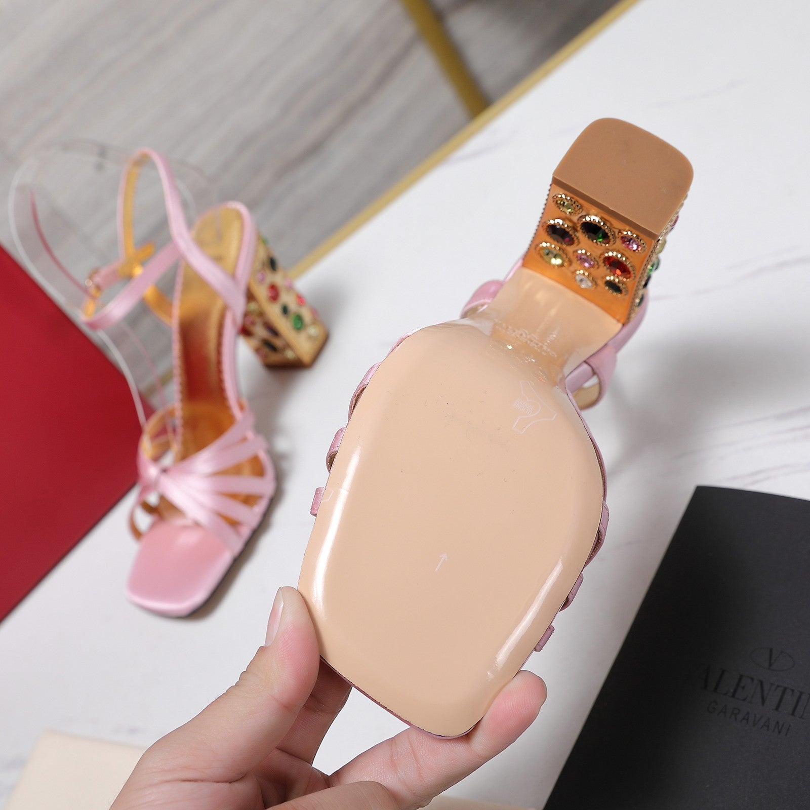 VT 2025 Diamond Heel Sandals Pink Cowhide 289511
