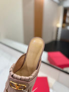 VT 2025 Signature Heeled Mule Pure Beige Calf Leather 295077
