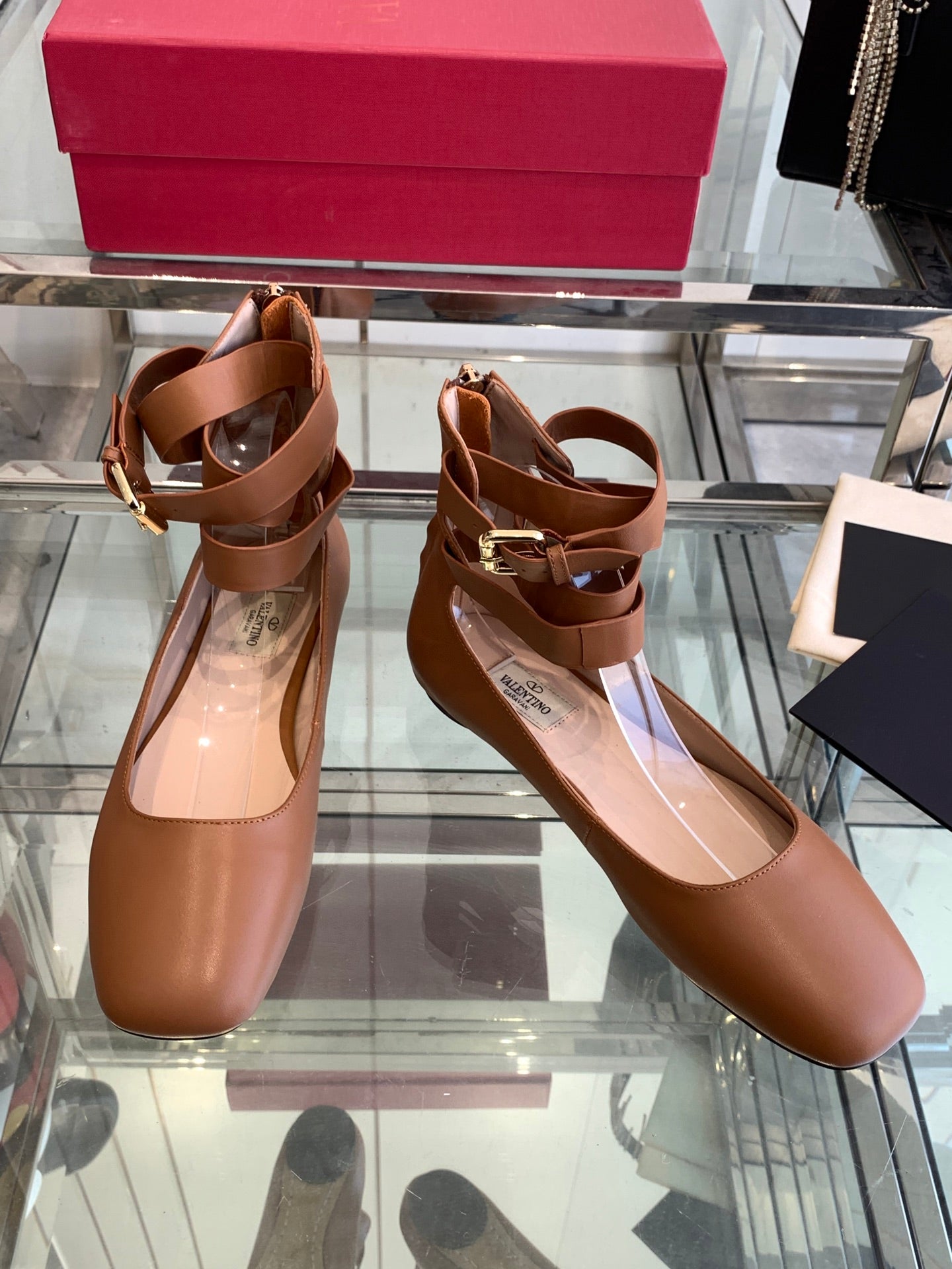 VT 25 Ballerina Ballet Gladiator Flats Brown Cowhide 292361