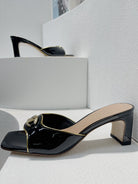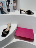 VT Mid Heel Mule Sandal Black Sheepskin 292757