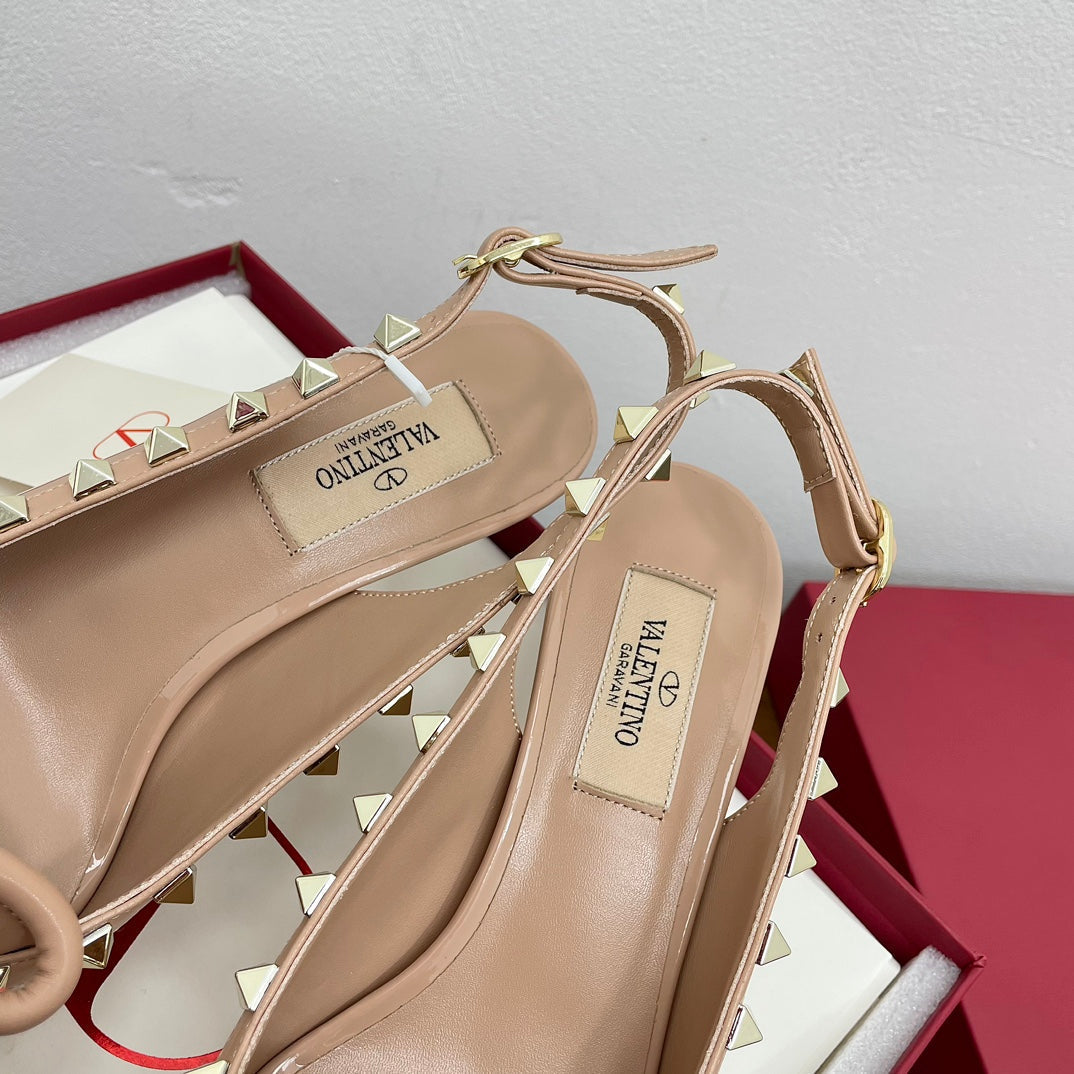 ROCKSTUD SANDAL WITH STRAPS IN LIGHT PINK CALFSKIN