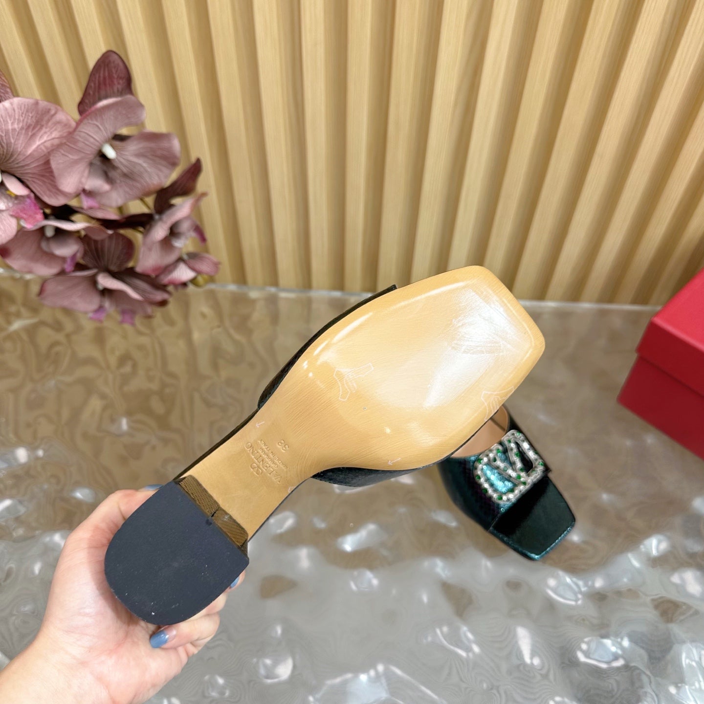 VT 25 Vlogo Slides 2cm Green Cowhide