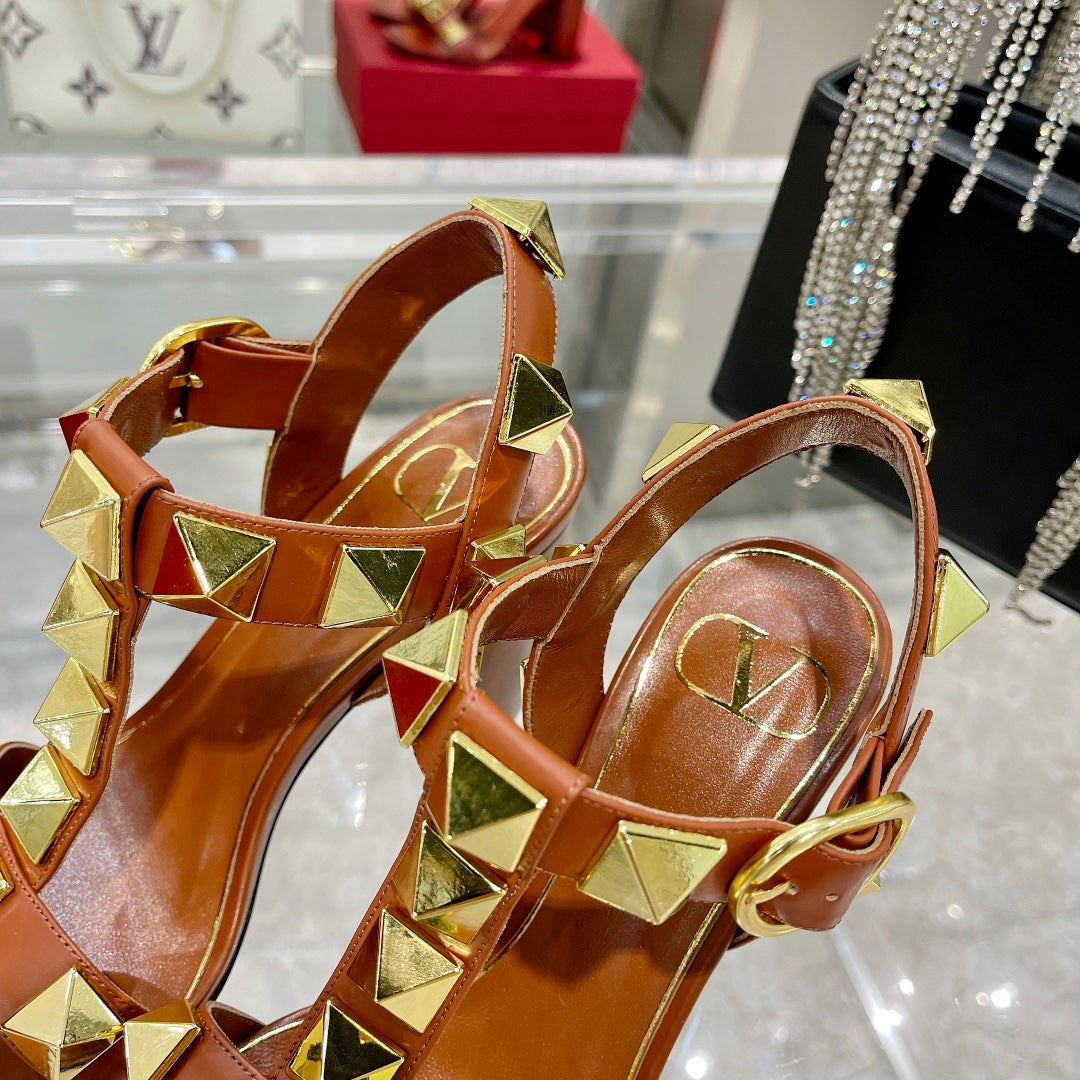 VT Rockstud Sandals Brown Gold Cowhide 369450