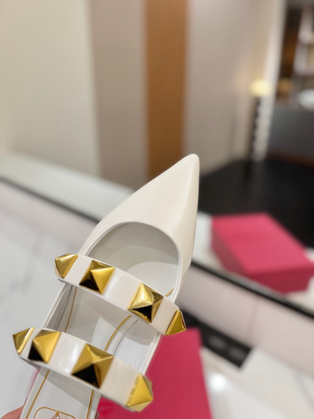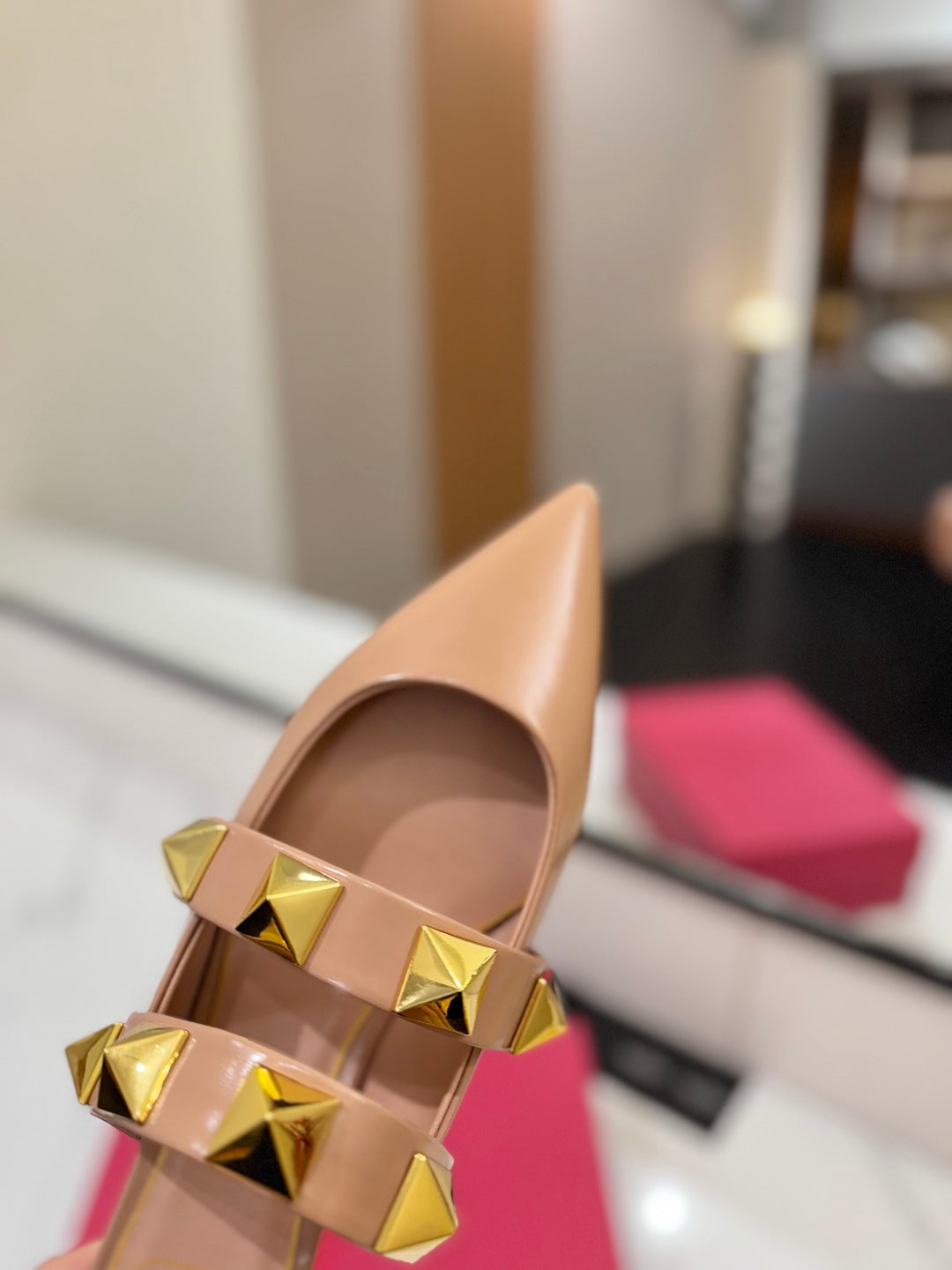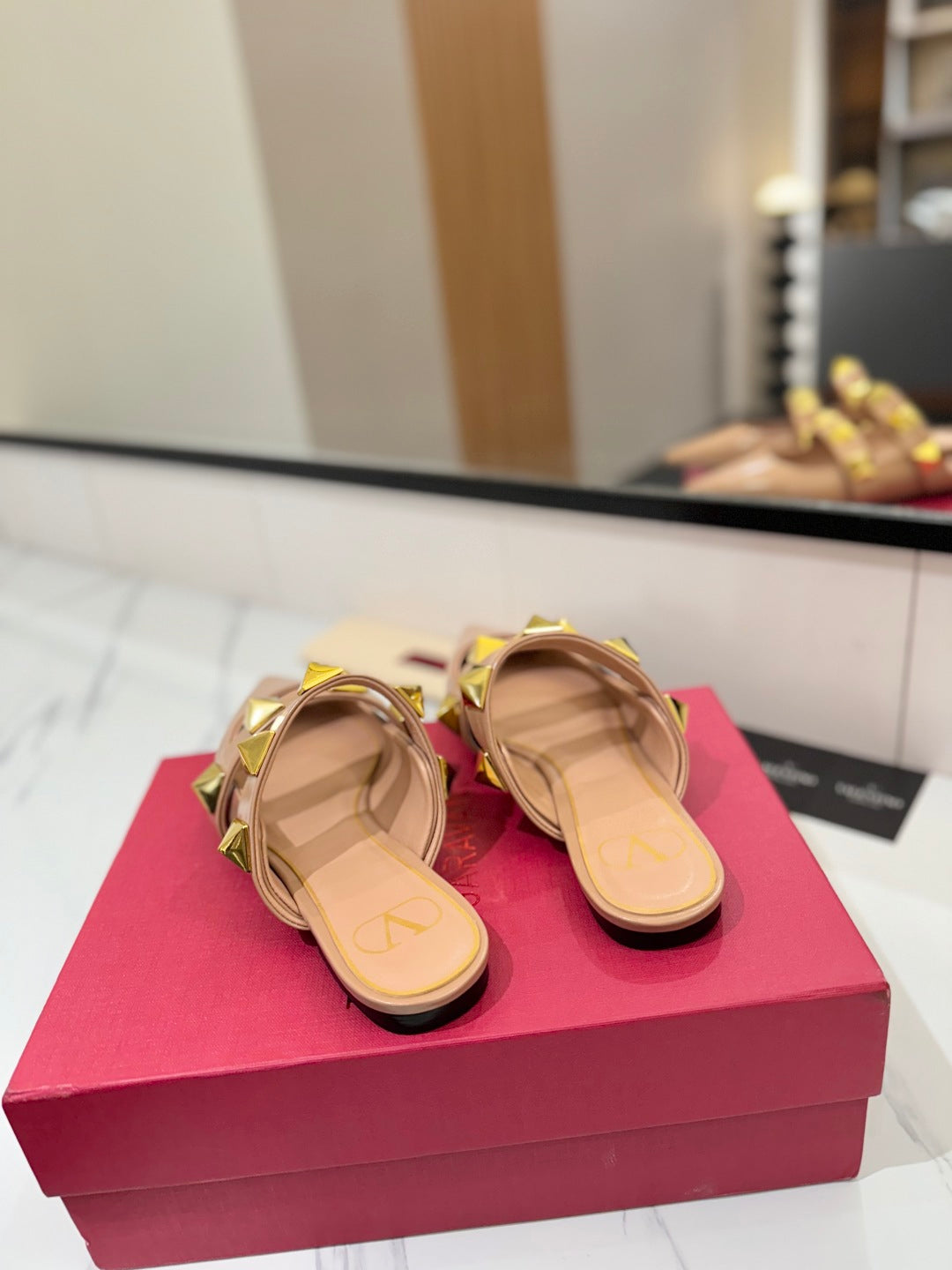 VT Rockstud Sandals Flat Nude Gold Cowhide