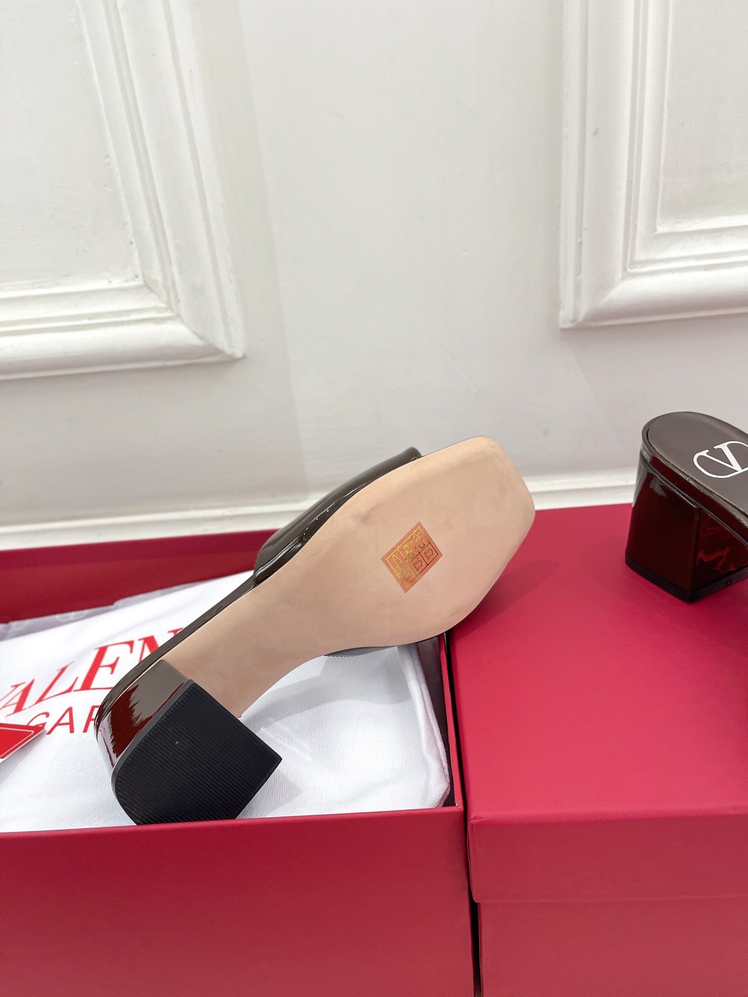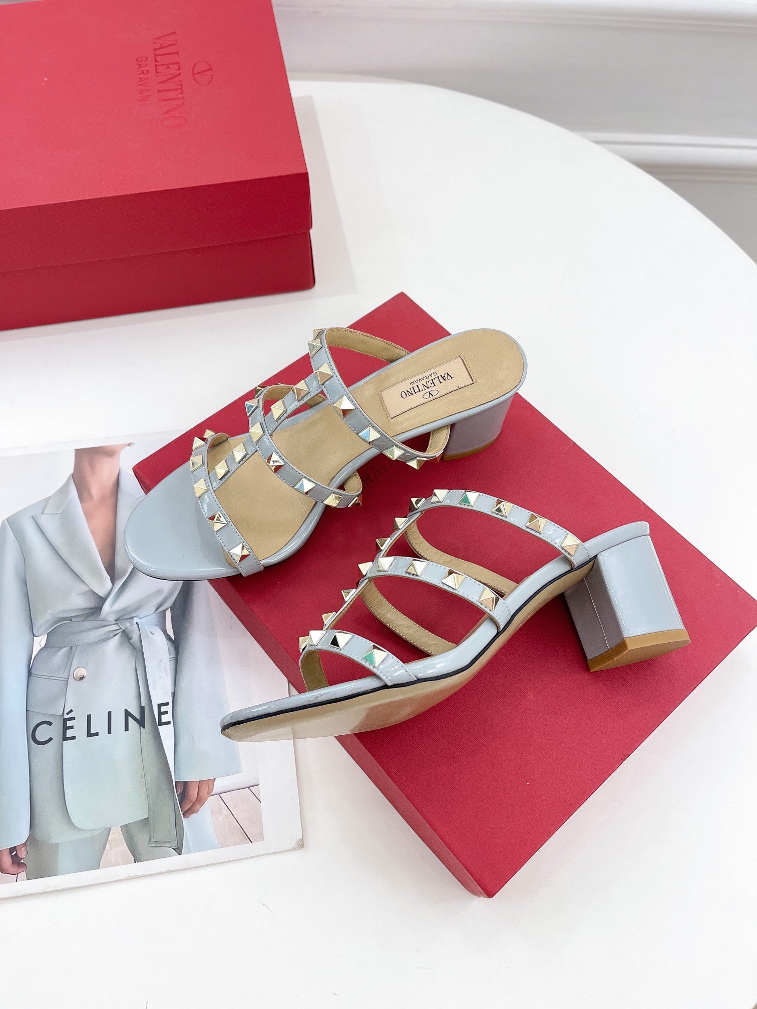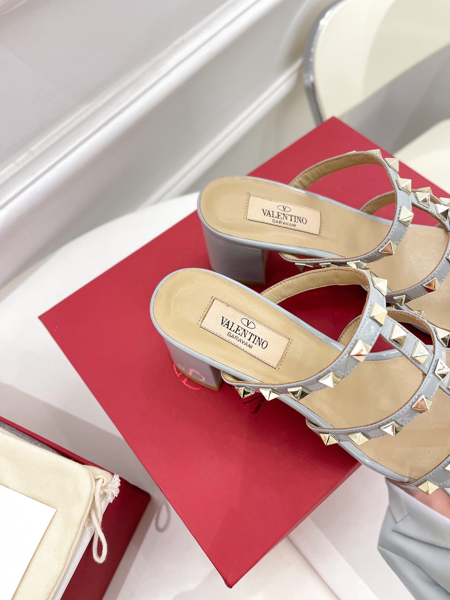 Rockstud 6cm Square Toe Rose Cannelle Leather Sandals
