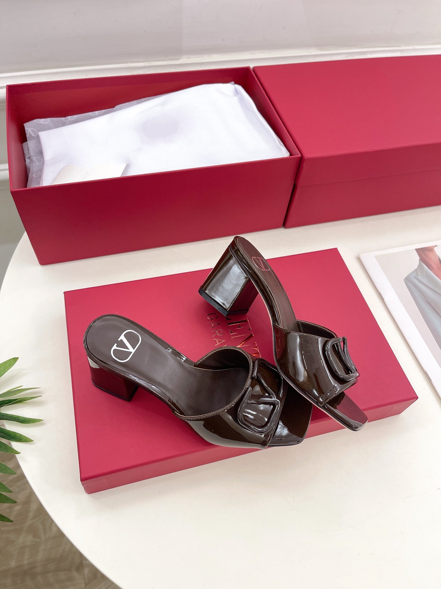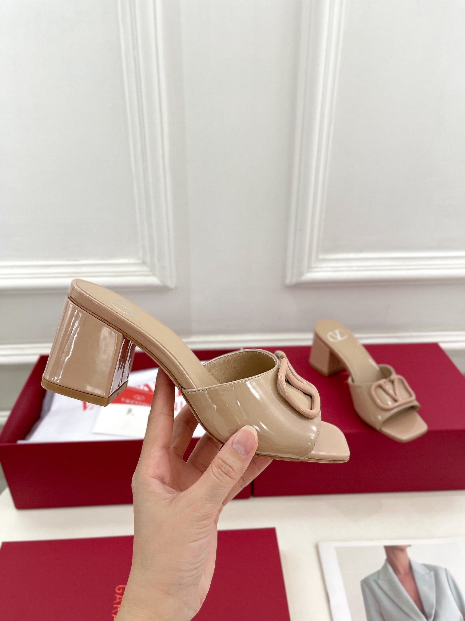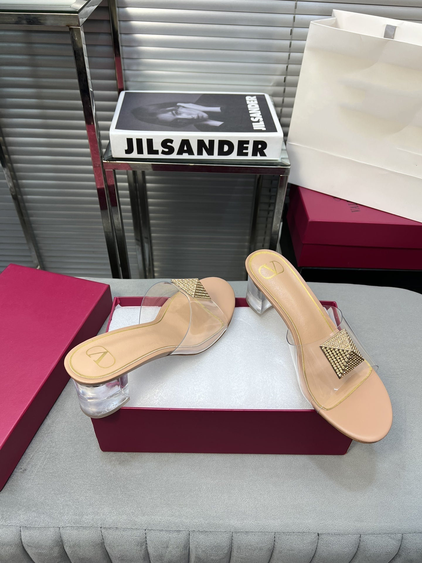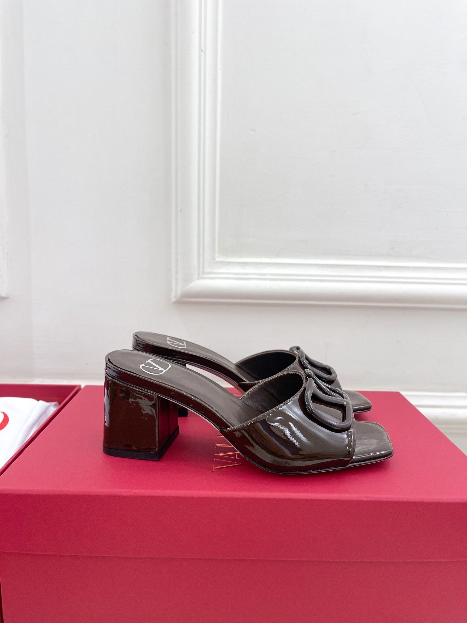 Rockstud 6cm Square Toe Rose Cannelle Leather Sandals