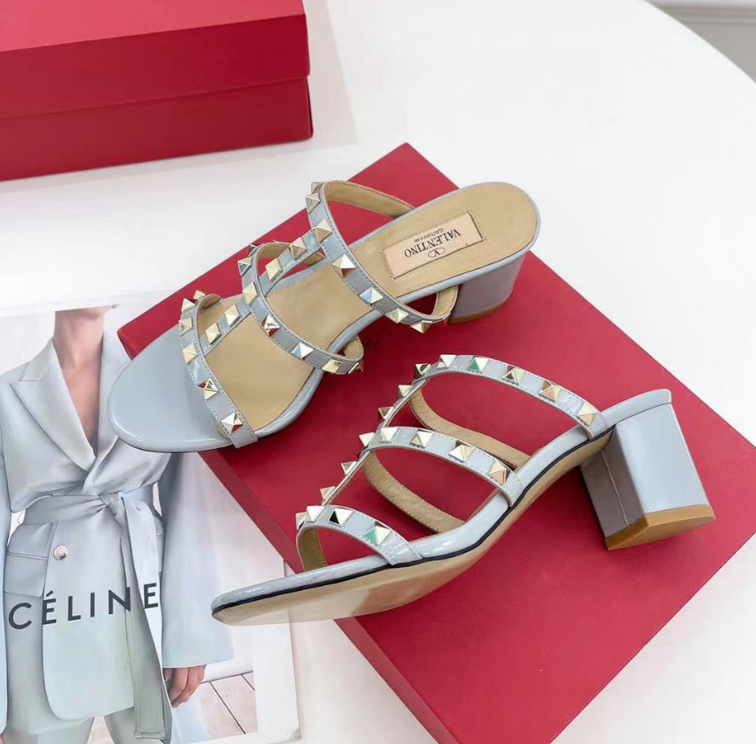 Heeled Sandals 6cm with Crystal Square Buckle Blue Sky