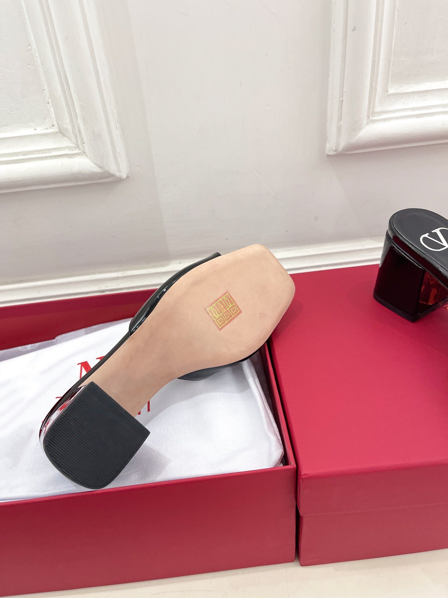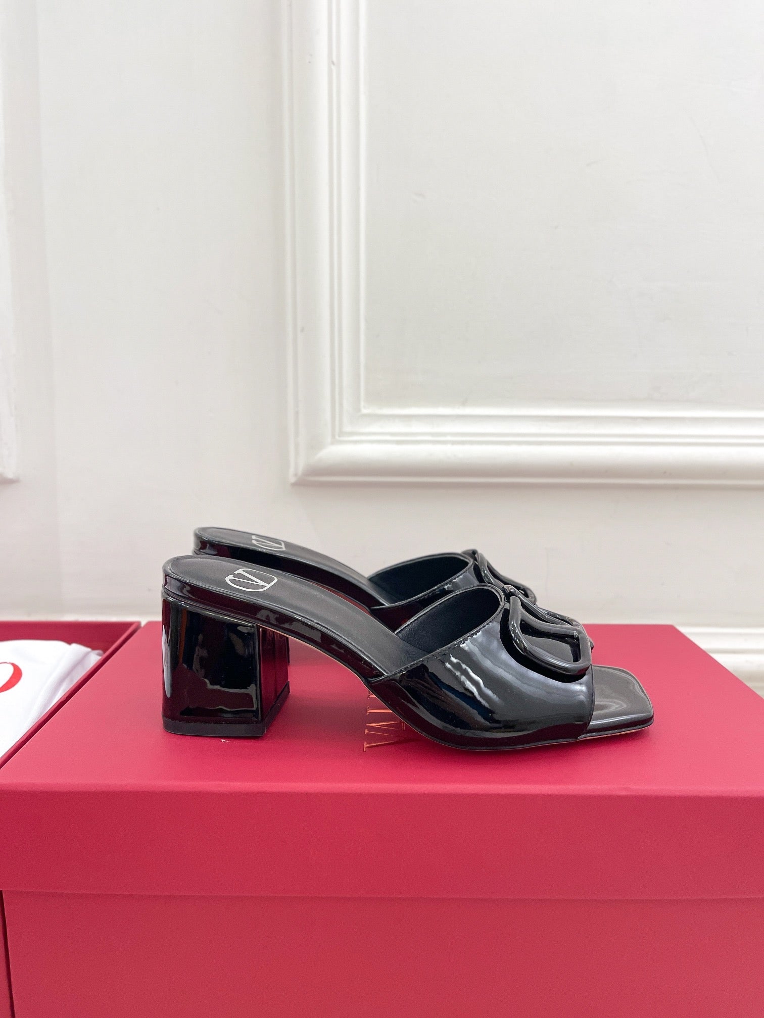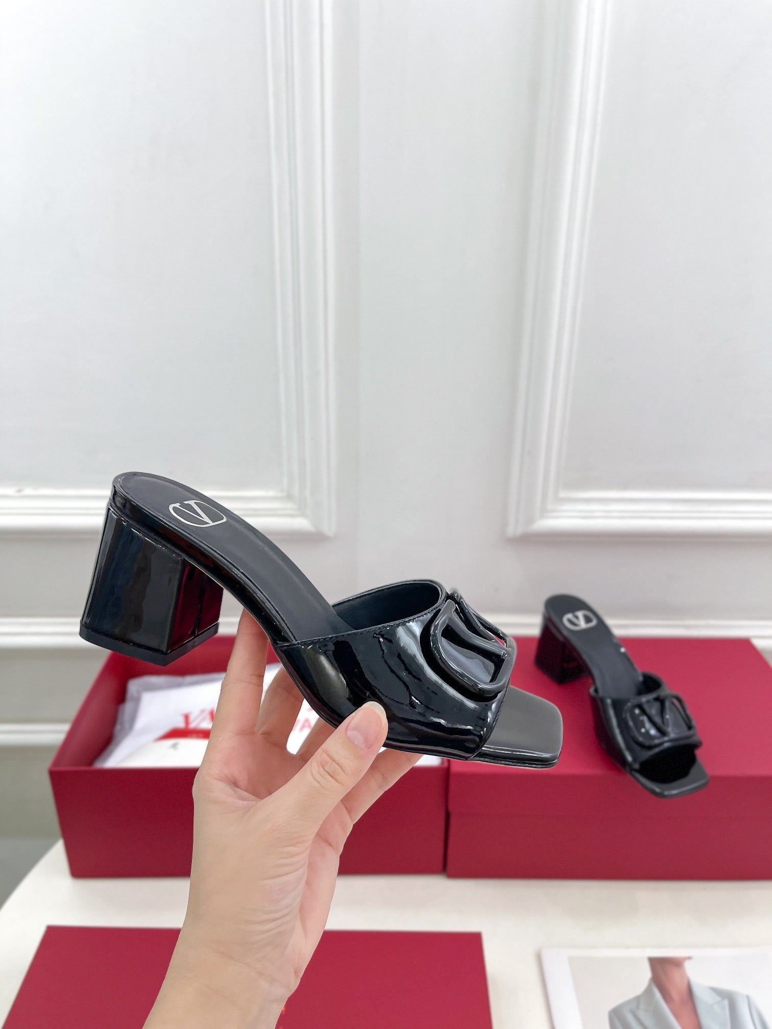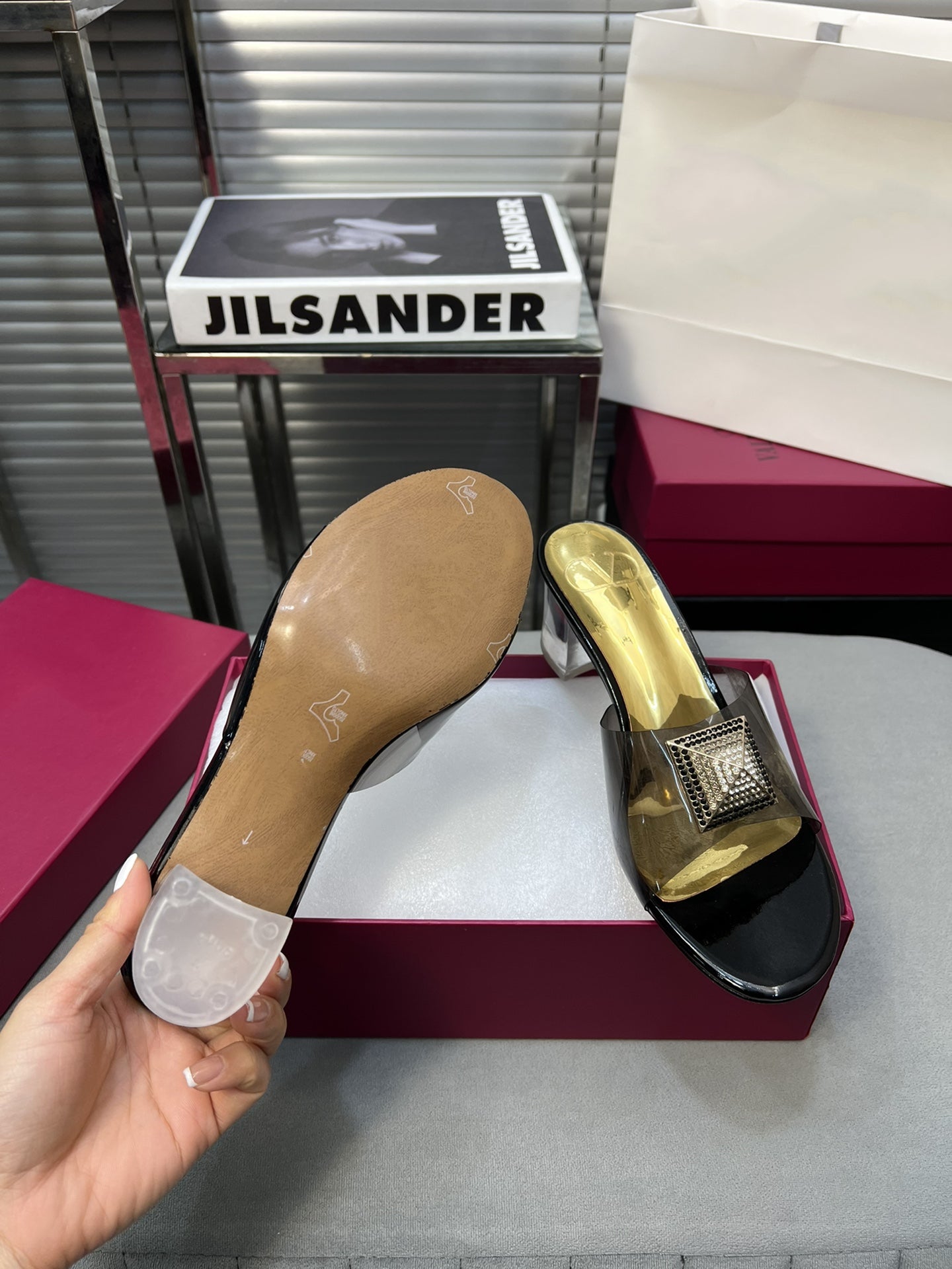Heeled Sandals 6cm with Crystal Square Buckle Black