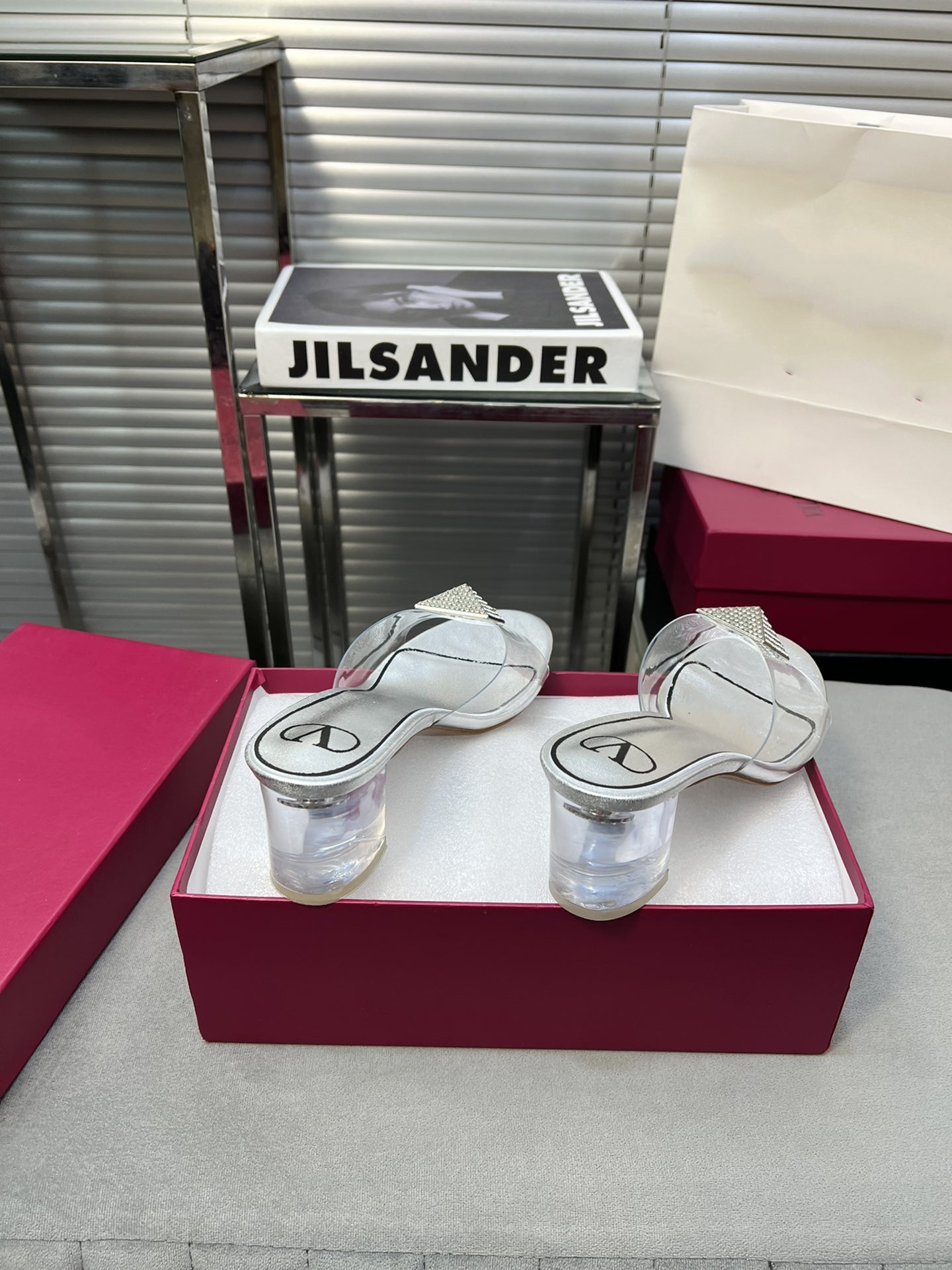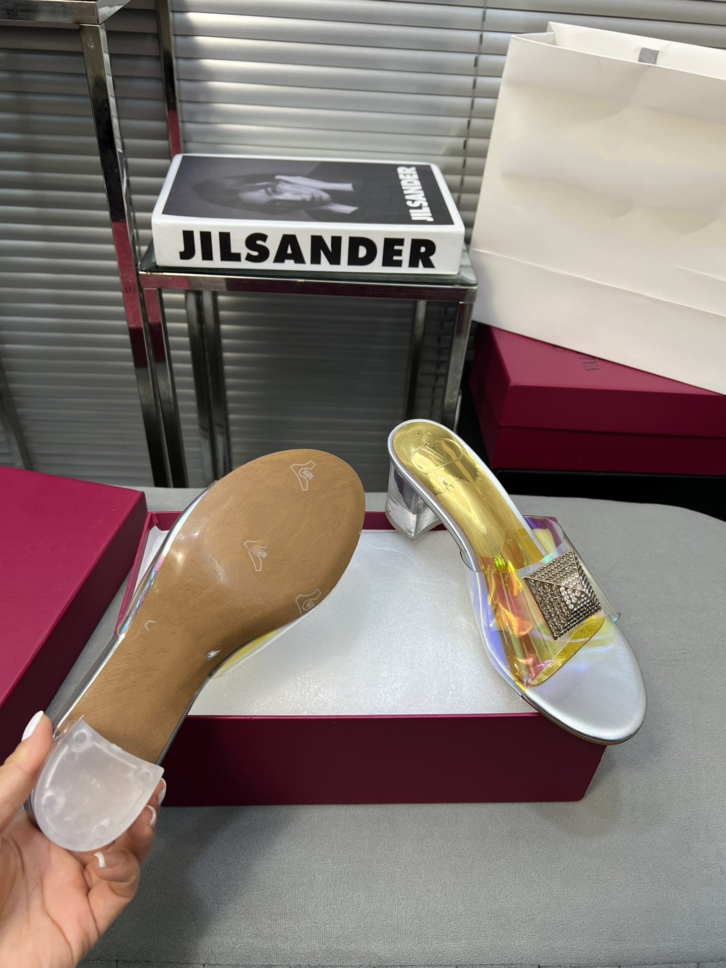 Heeled Sandals 6cm with Crystal Square Buckle Silver