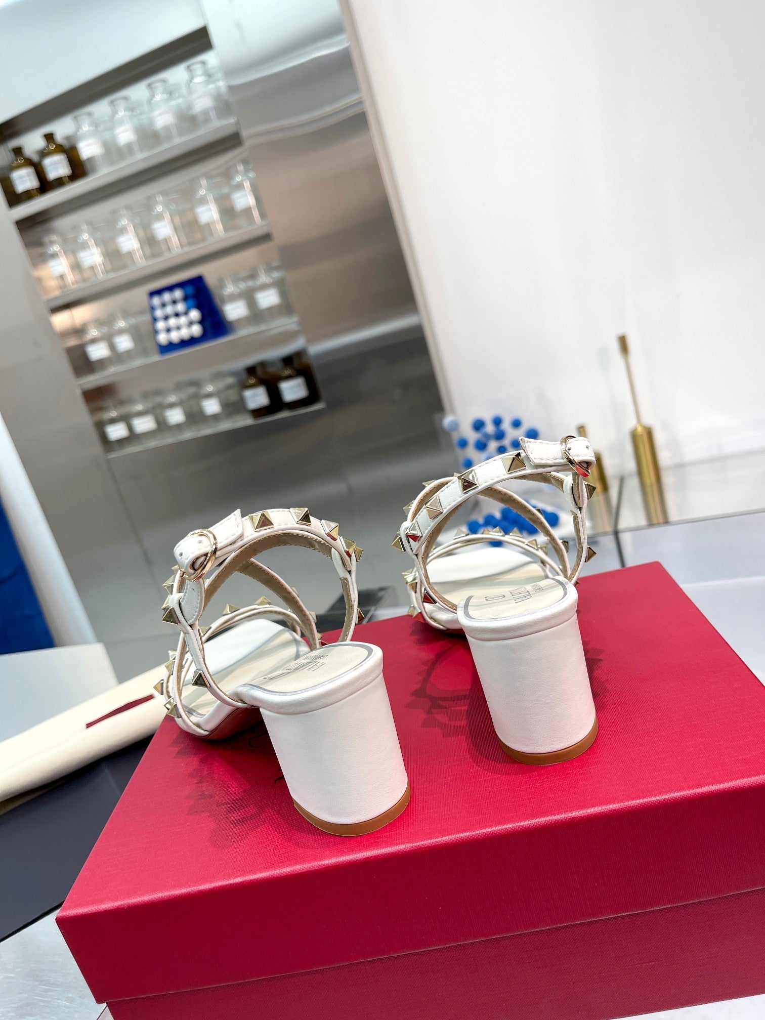 Rockstud Ankle Strap Wedge Sandal Calfskin White 10cm