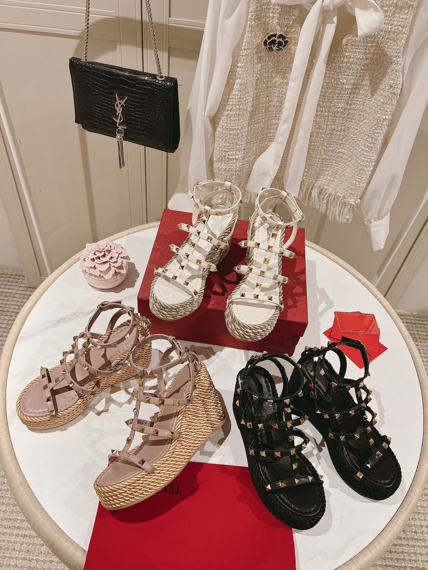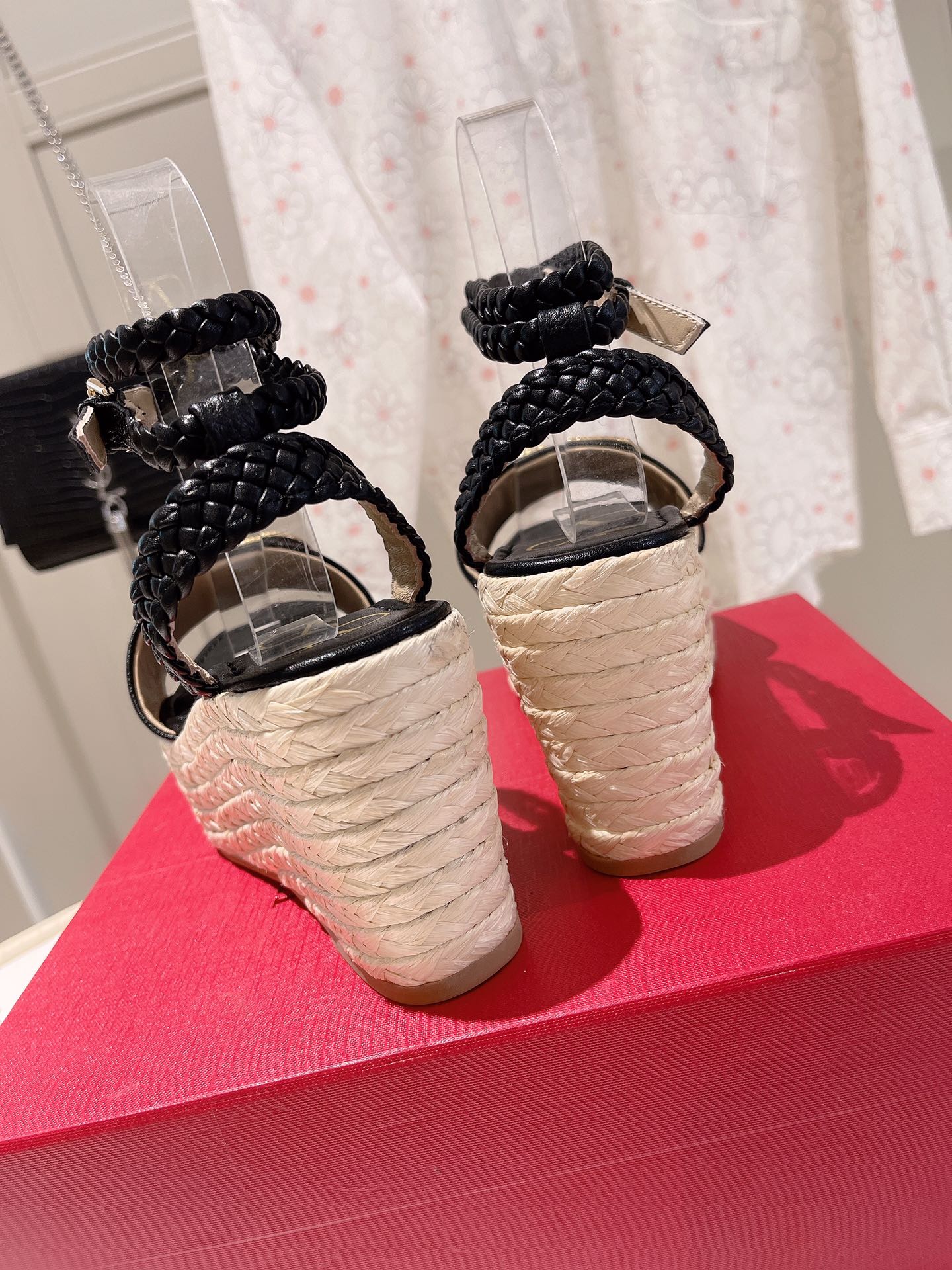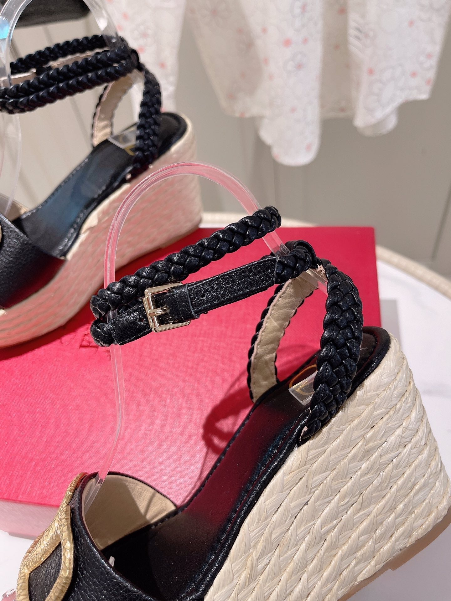 Rockstud Wedge Sandal In Calfskin Leather Black 10cm