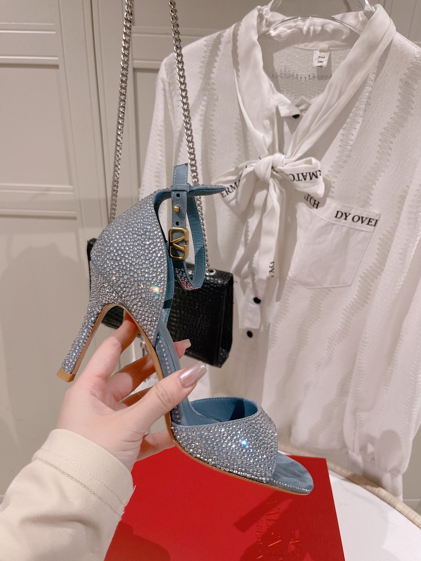 Rockstud Slingback Ballerina Flats Mist Blue Leather Cross Straps