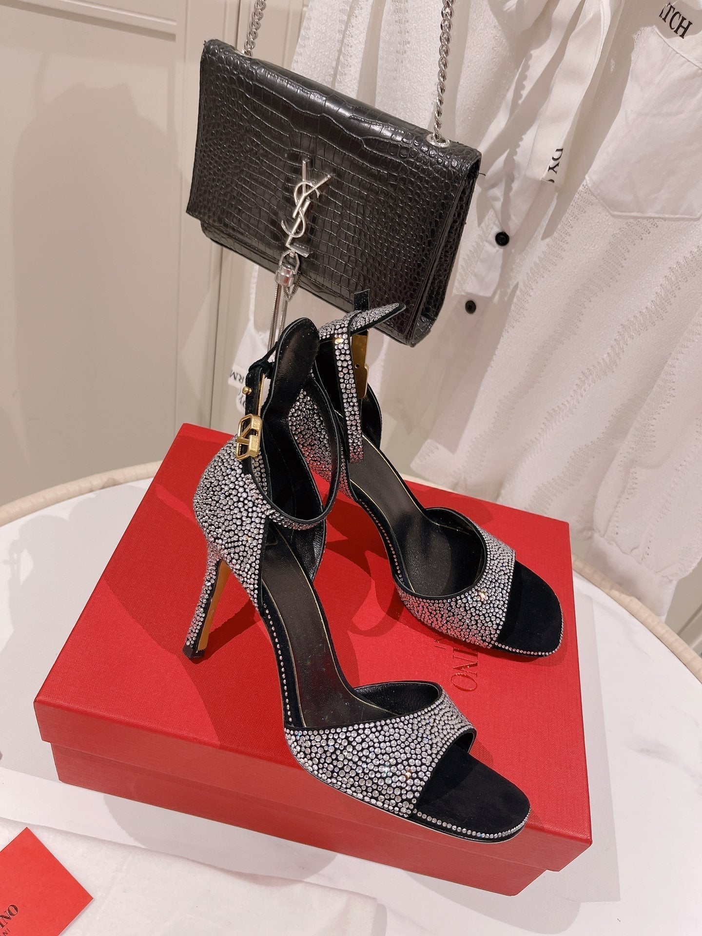 Rockstud Ankle Strap Wedge Sandal Calfskin Black 10cm
