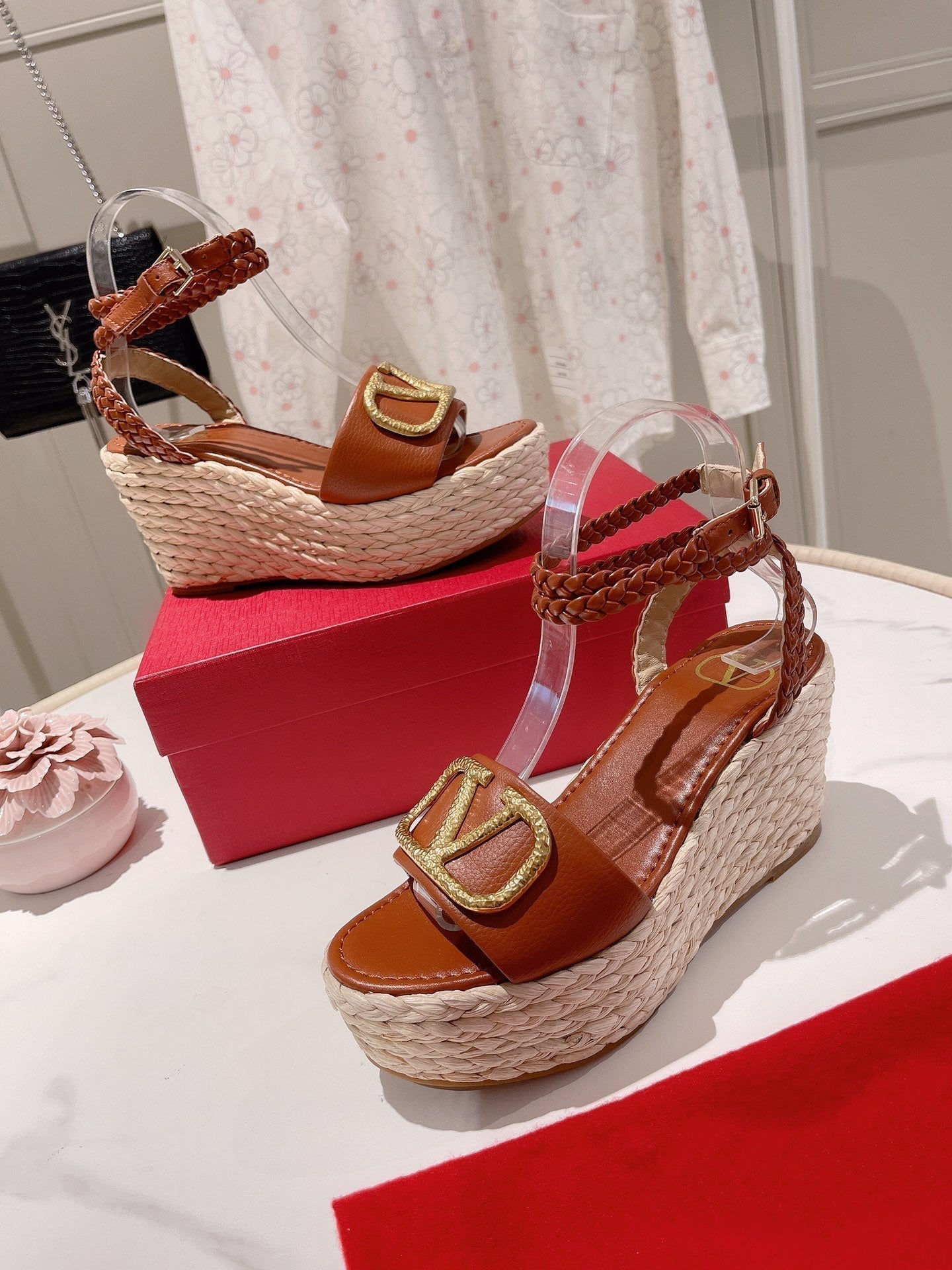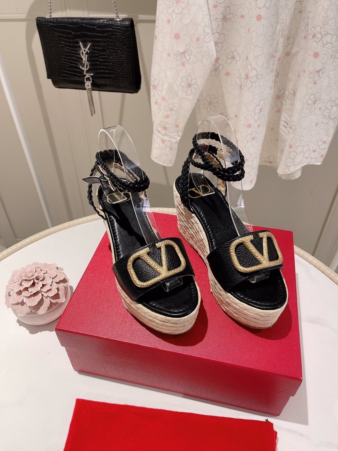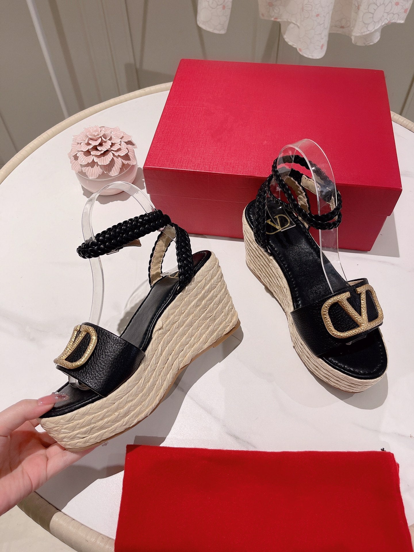 VLogo Signature Calfskin Wedge Sandal 90mm Black