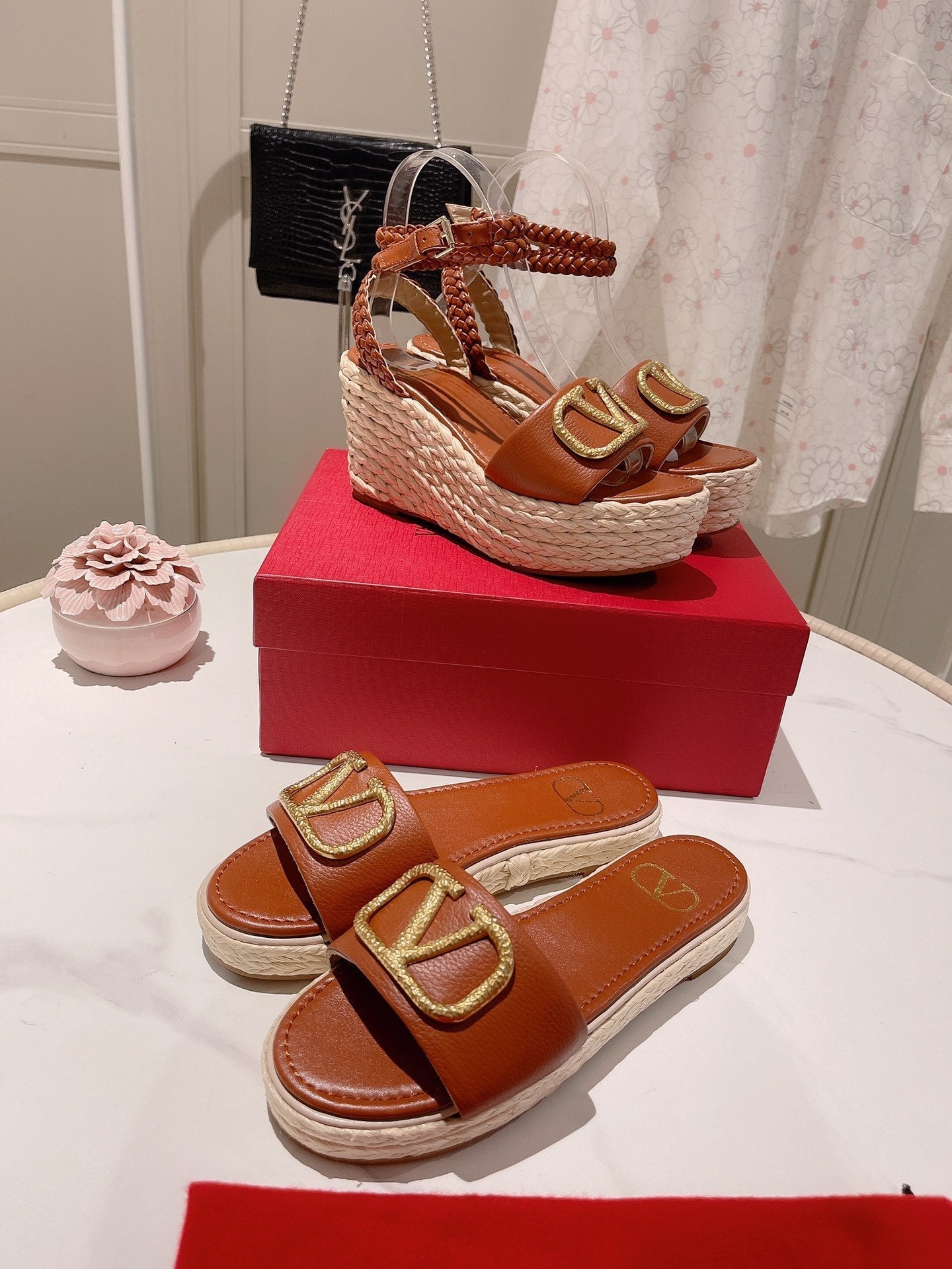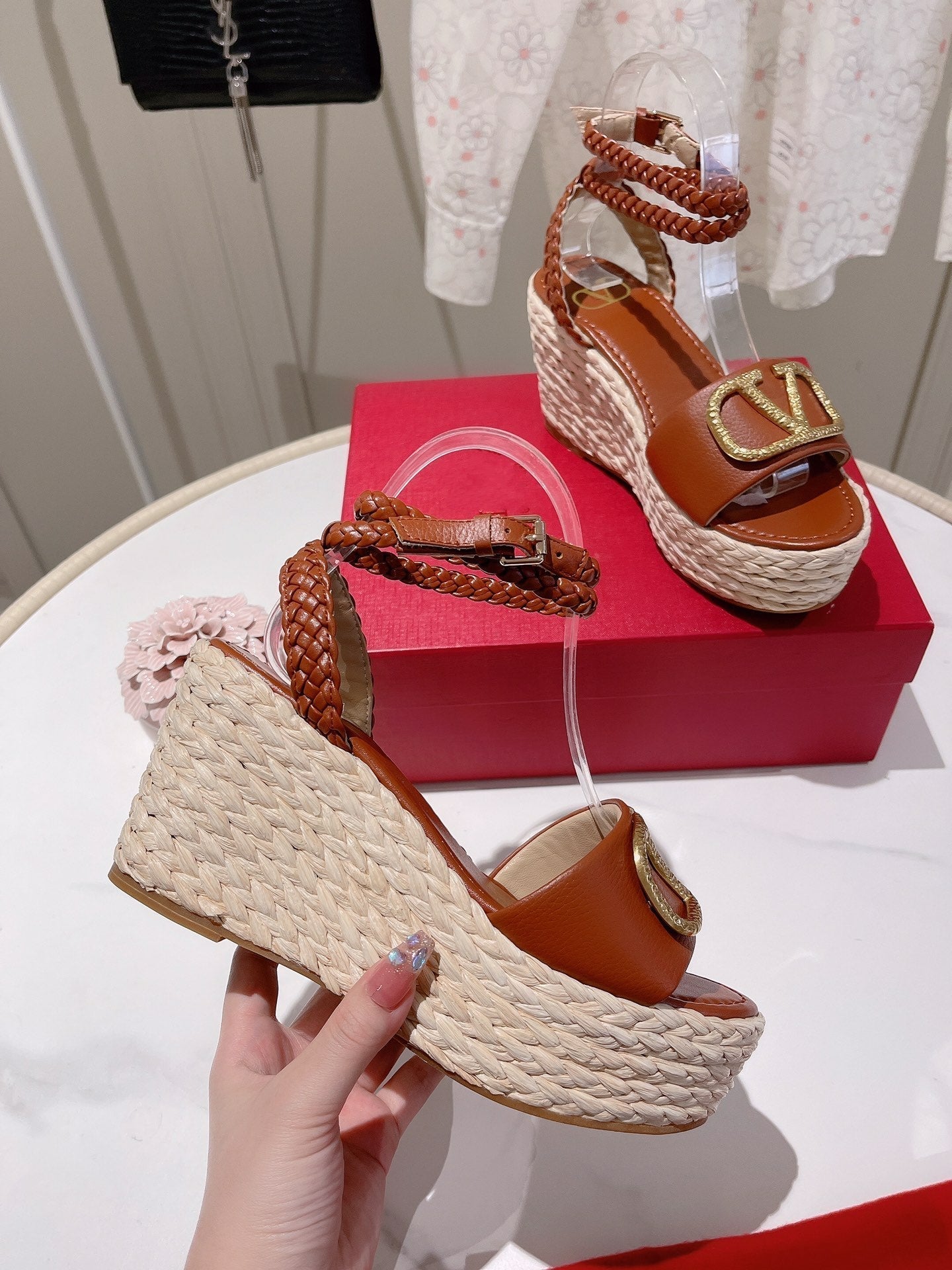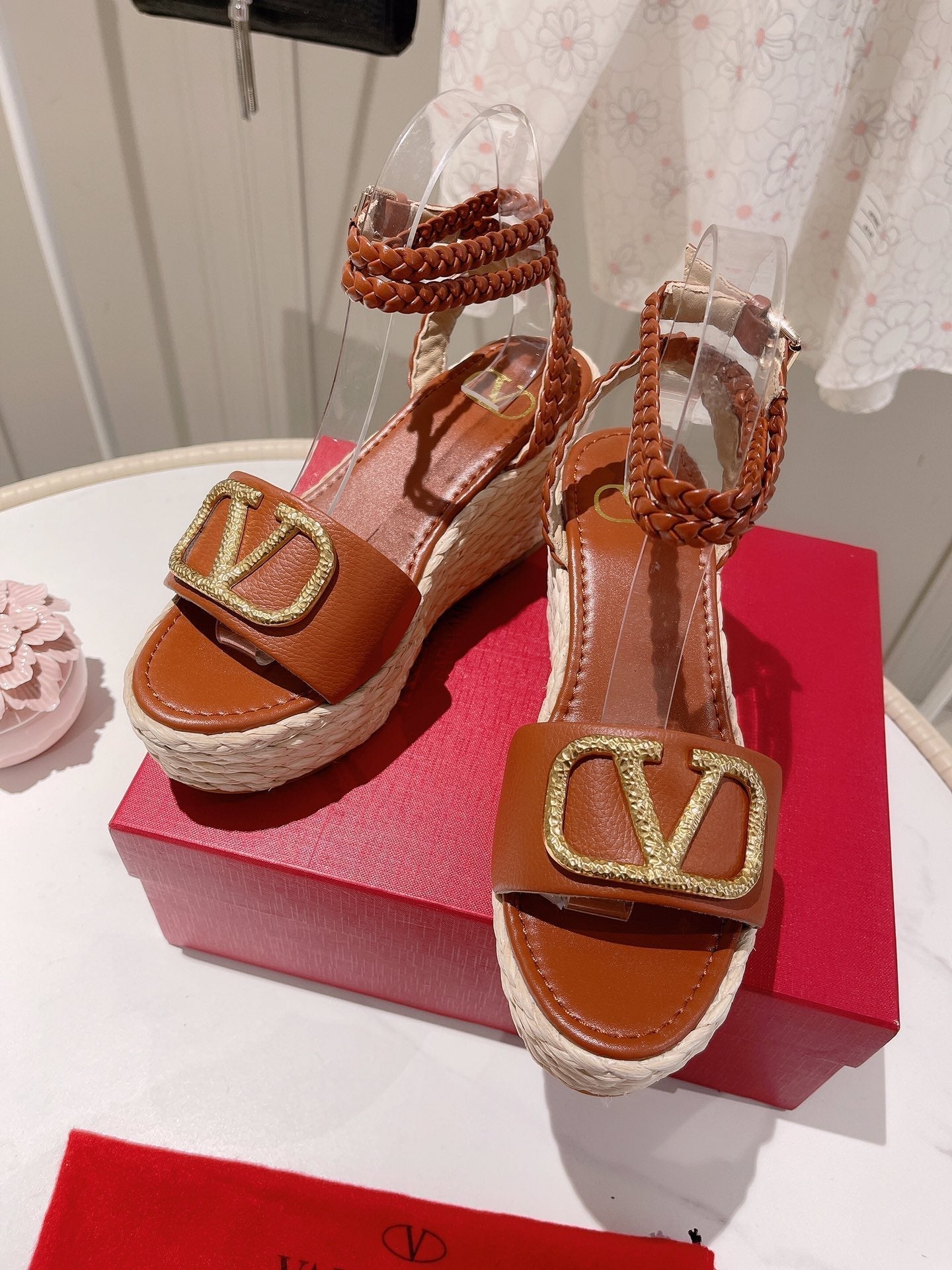 VLogo Signature Calfskin Wedge Sandal 90mm Black