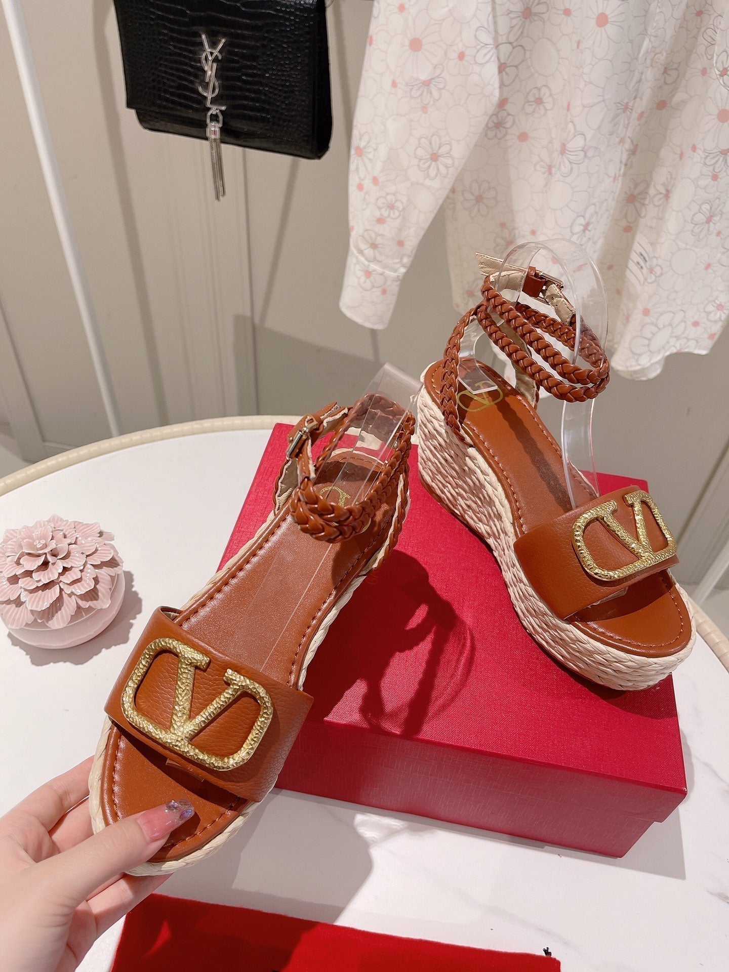 VLogo Signature Calfskin Wedge Sandal 90mm Burgundy