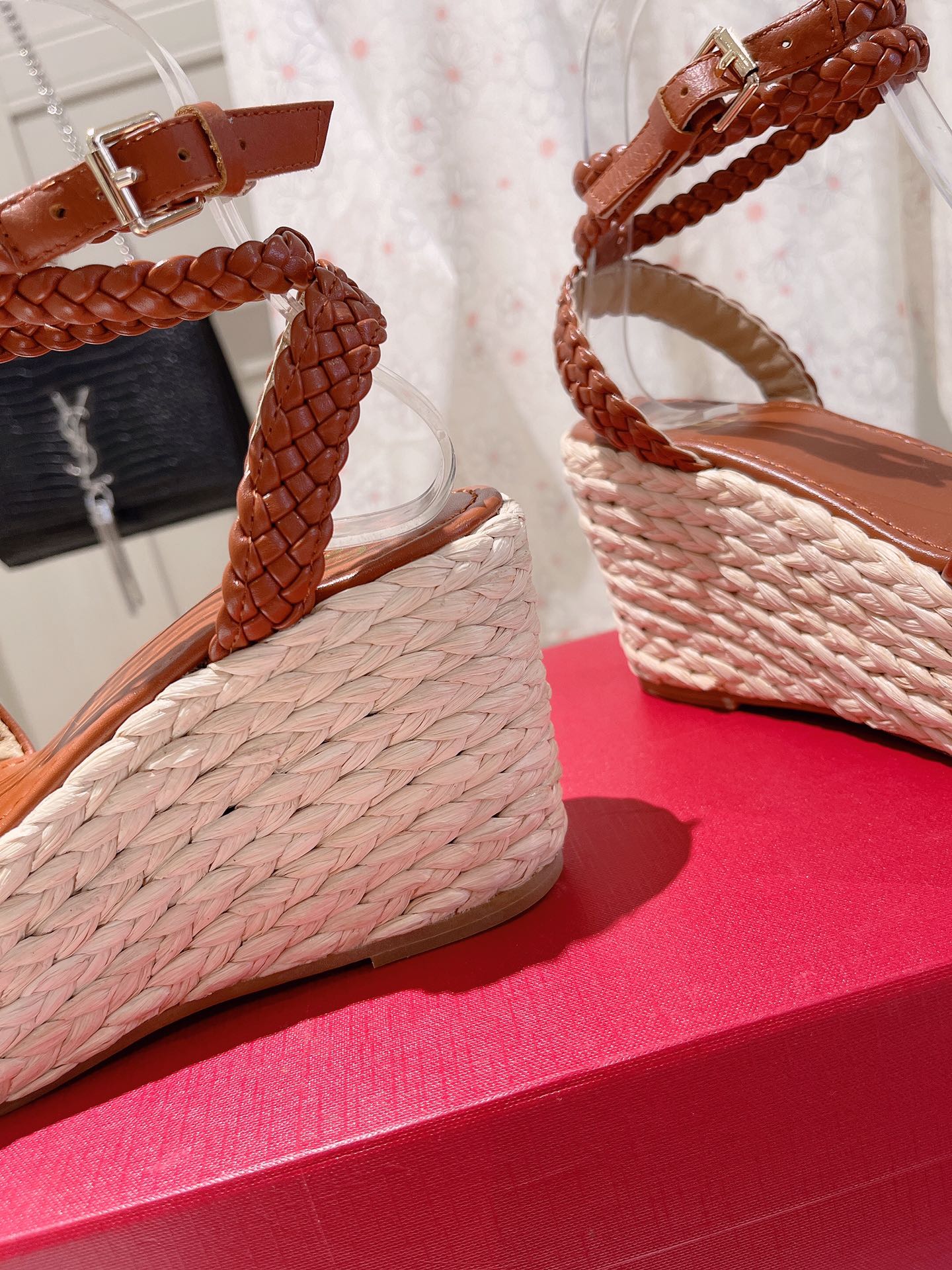 Rockstud Laminated Nappa Wedge Sandal Poudre 10cm