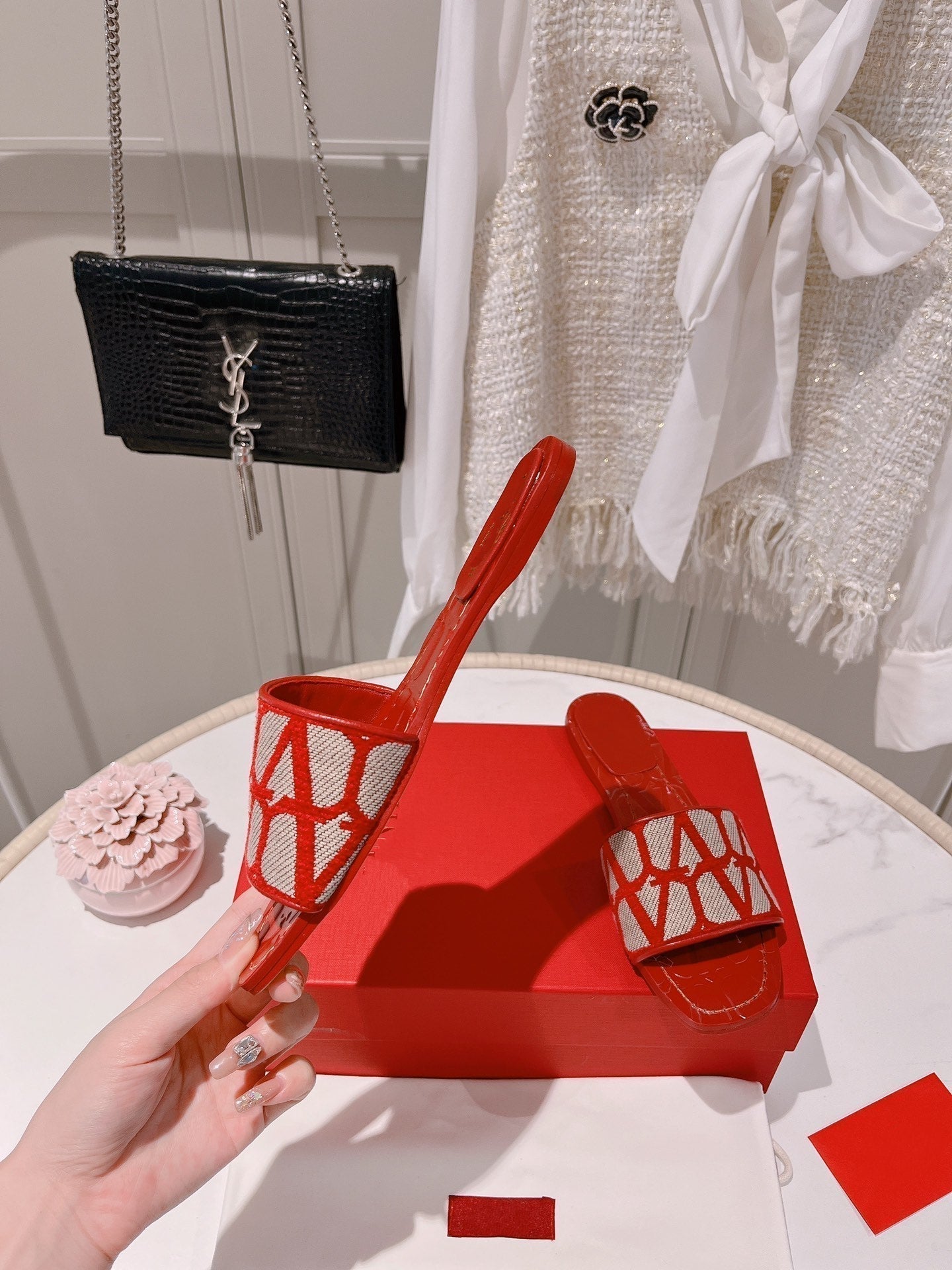 Toile Iconographe Slide Sandal 65mm Red Beige