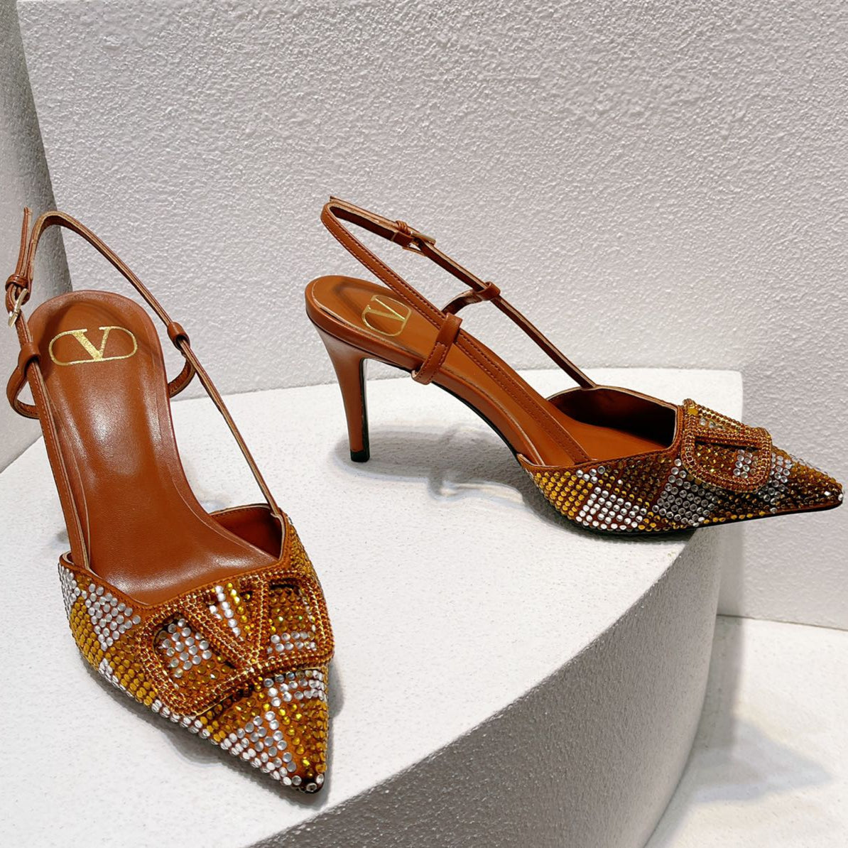 VT High Heeled Slingbacks Brown Chocolate Sheepskin 292826