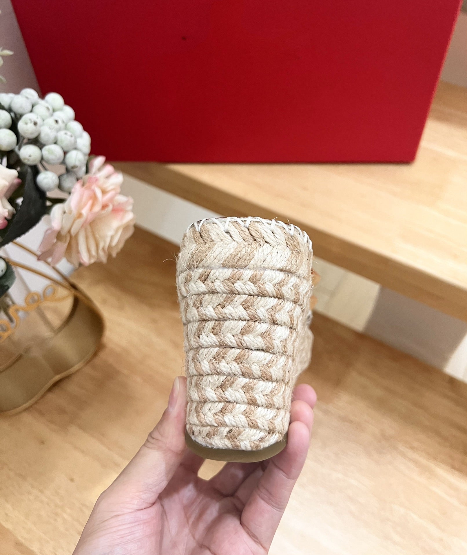 Rockstud Crisscross Espadrilles 80mm Sandal Wedges Ivory