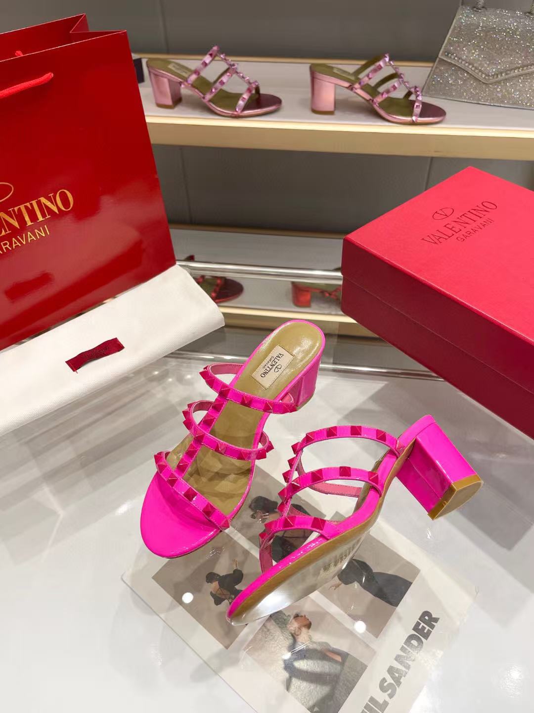 VT Sandals Heels 50mm Fuchsia Pink Cowhide 292772