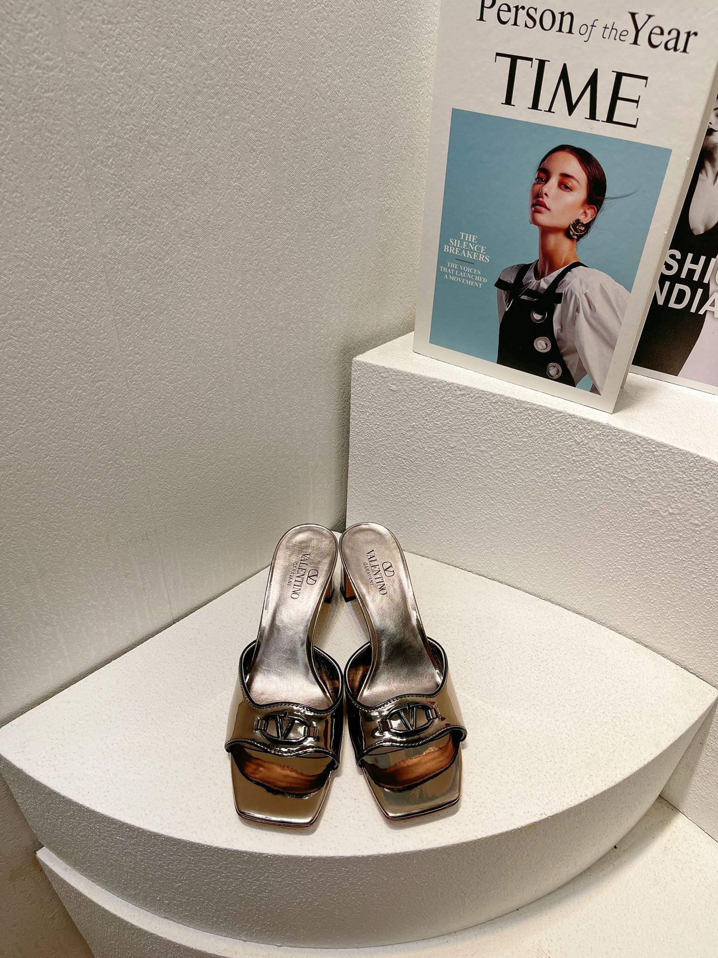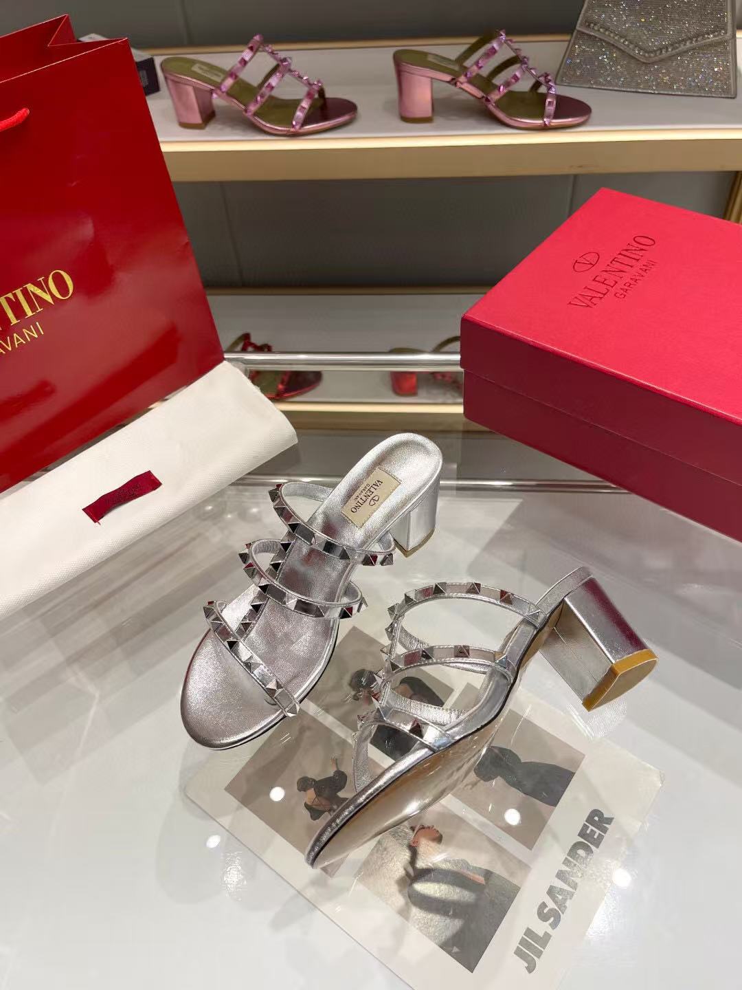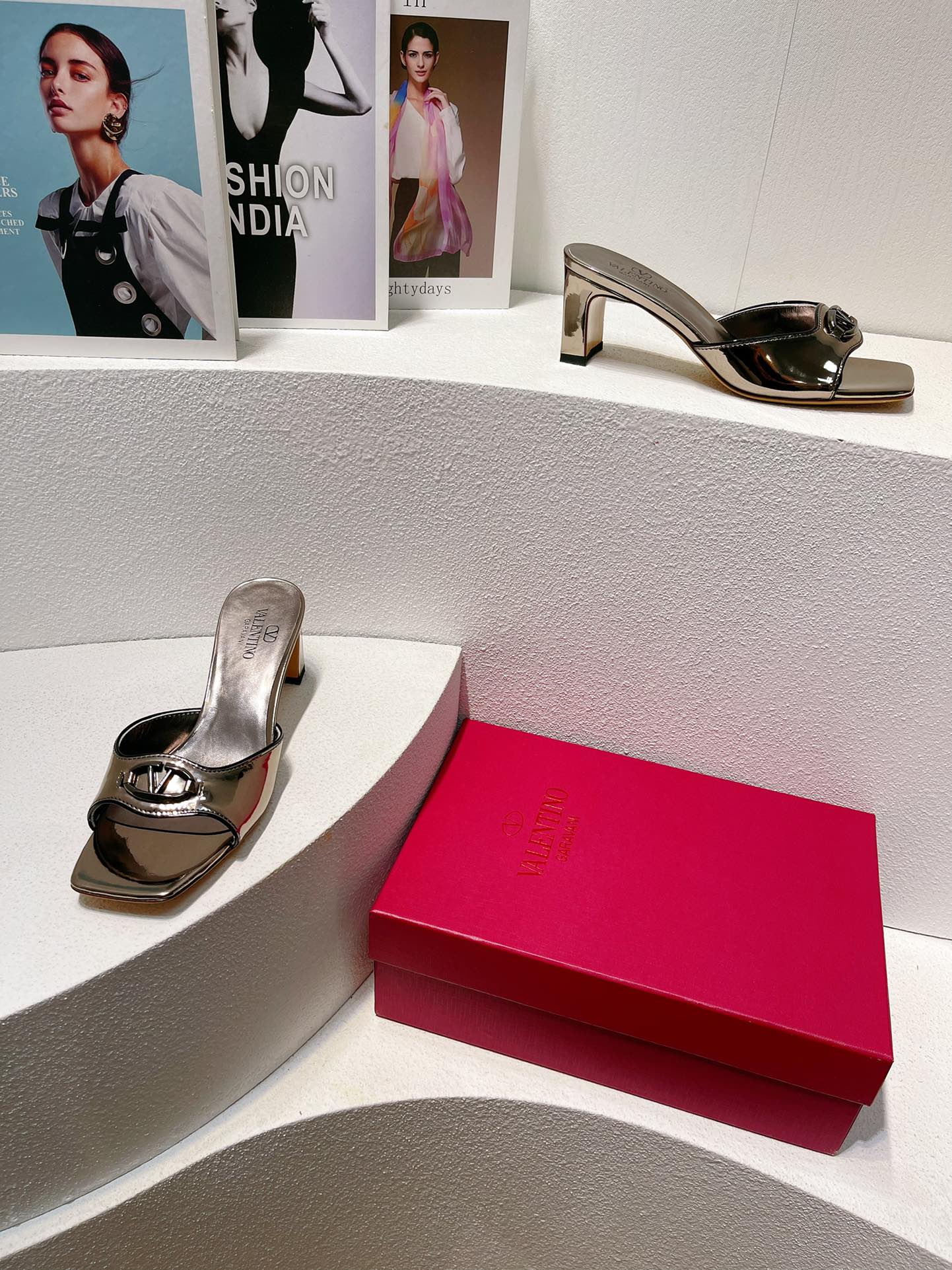 VT Sandals Heels 50mm Silver Cowhide 292775