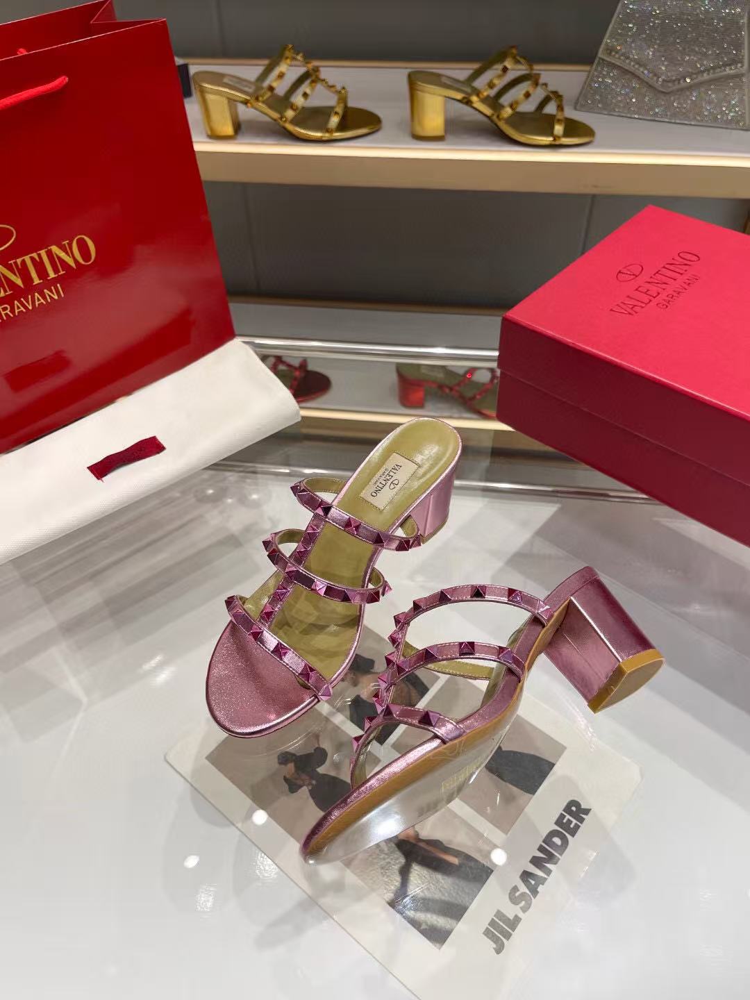 VT 25 Rockstud Sandals 65mm Pink PVC Sheepskin