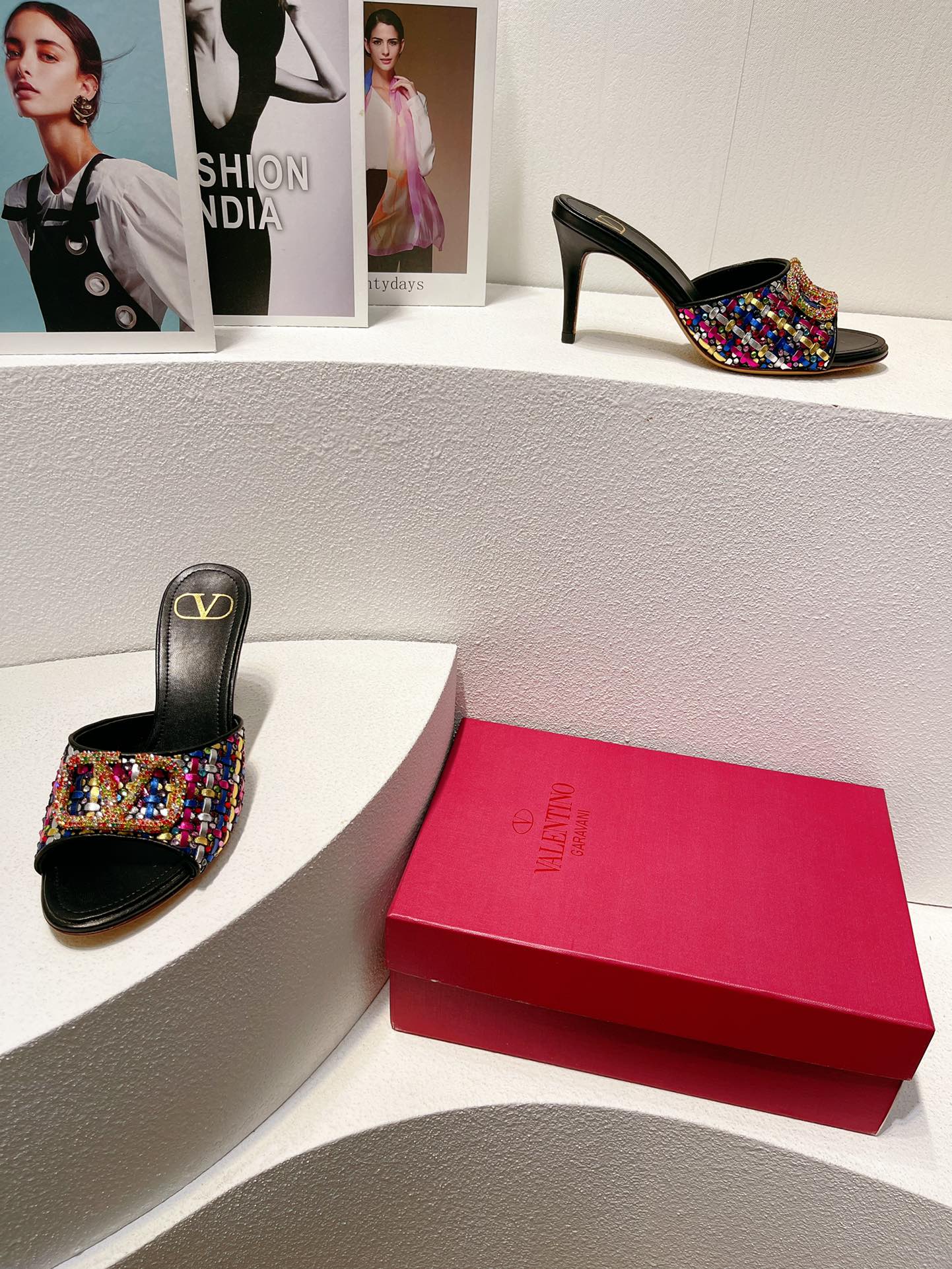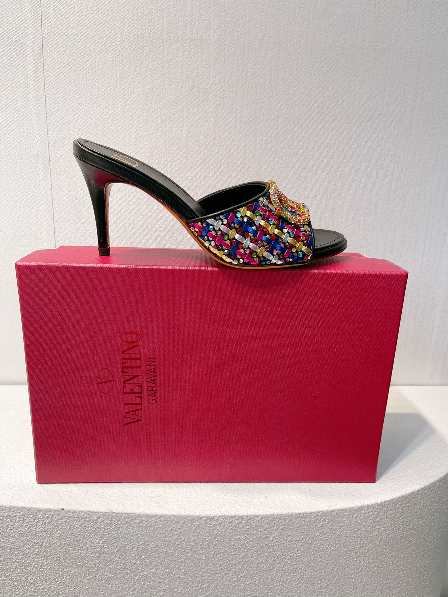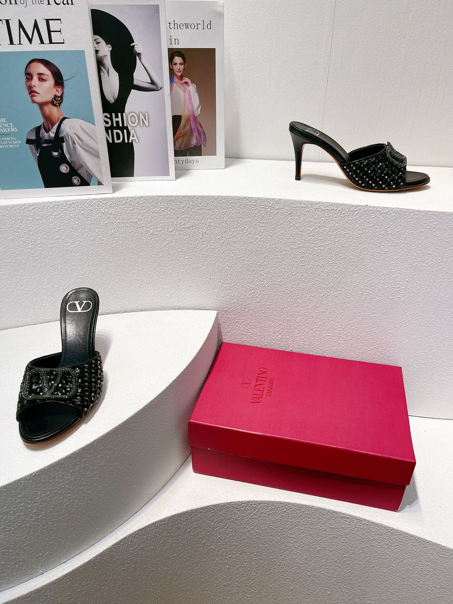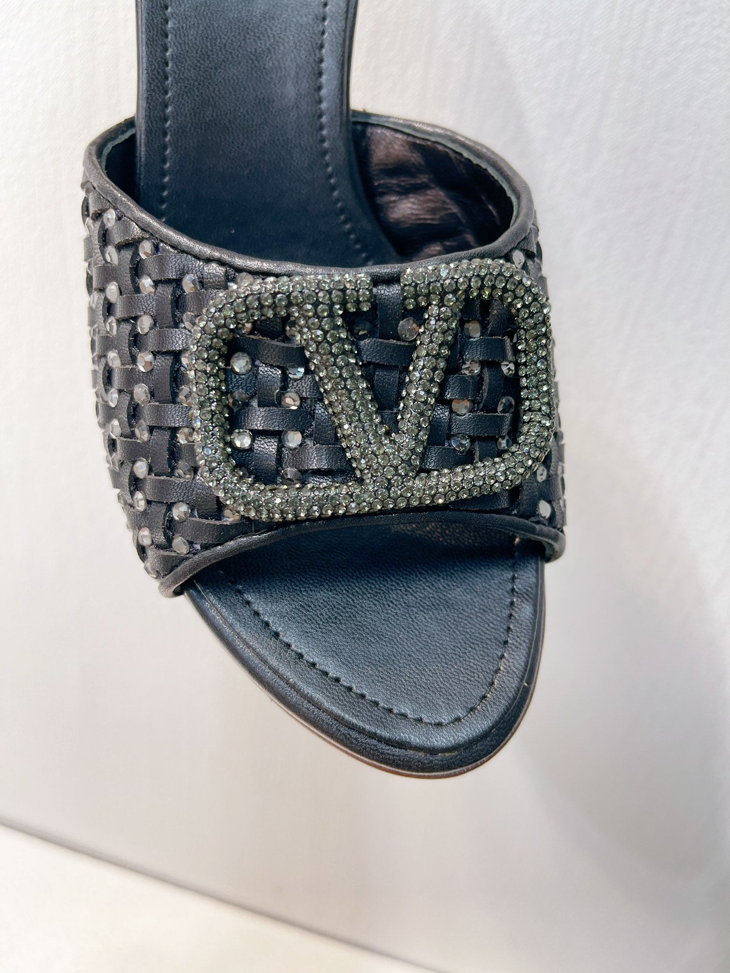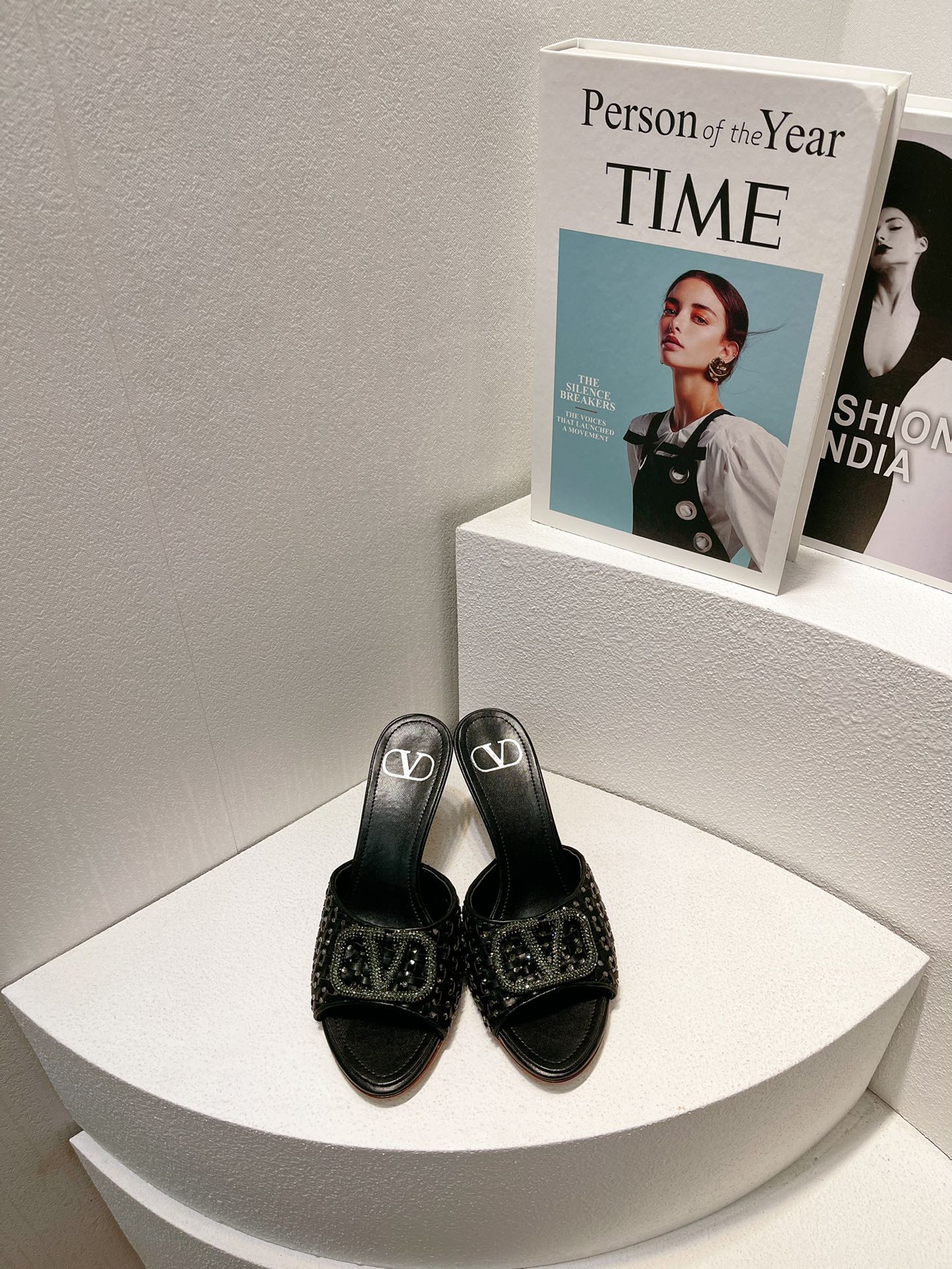 VT 25 Rockstud leather slides Black Sheepskin 289663
